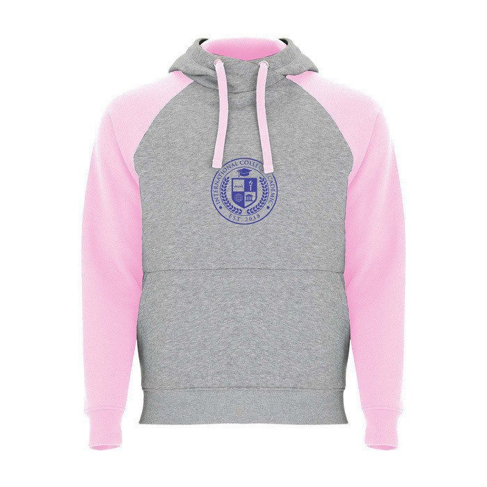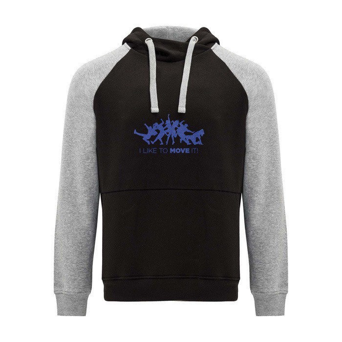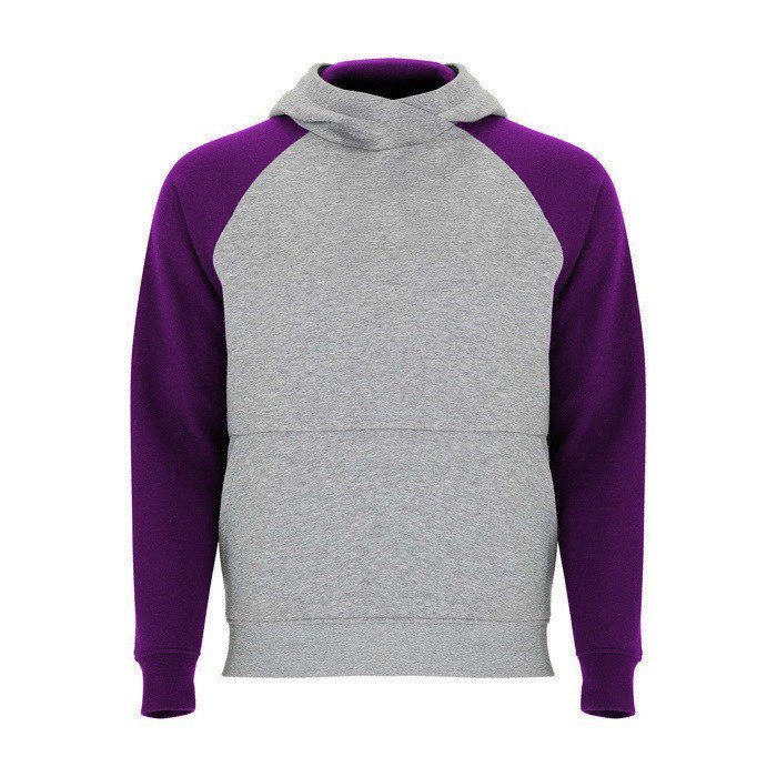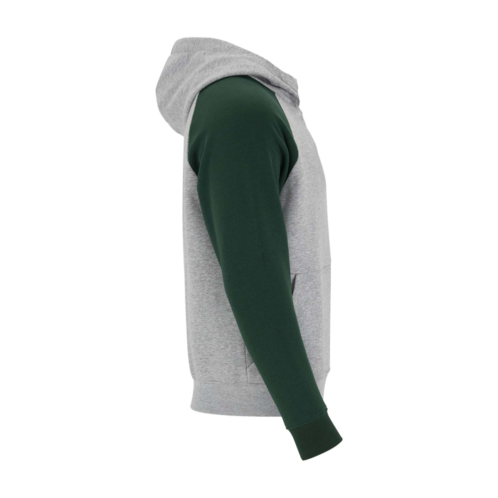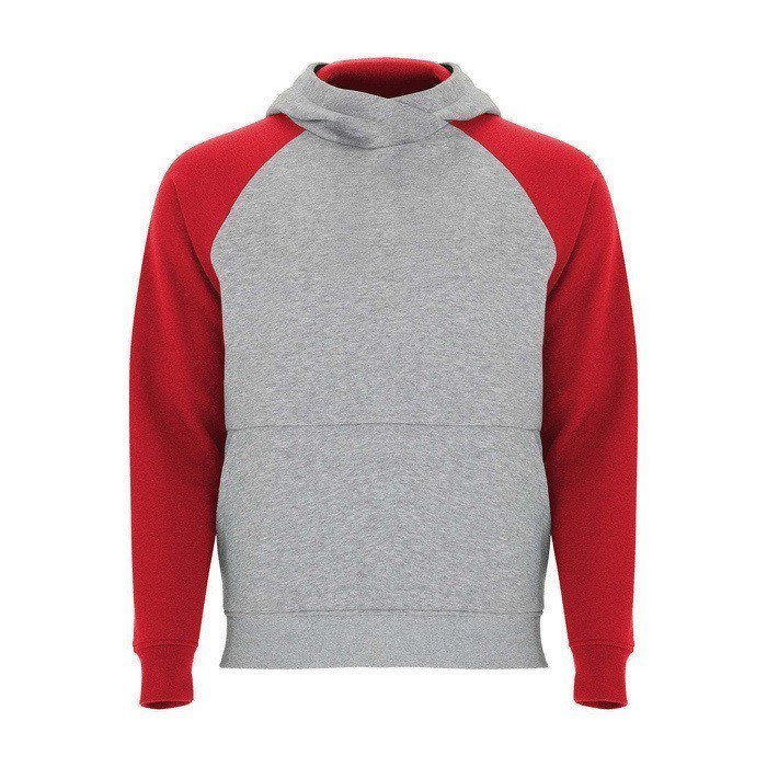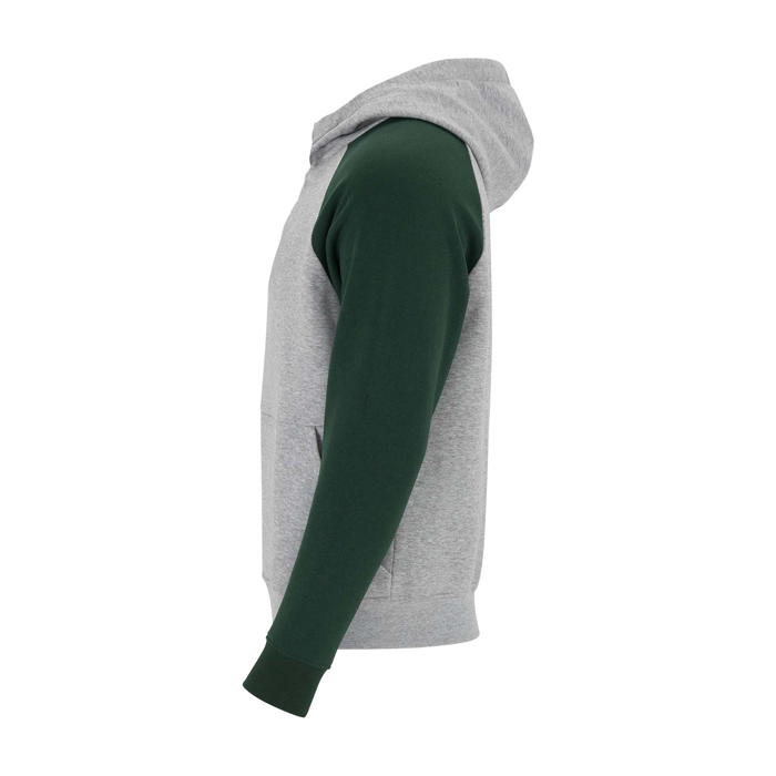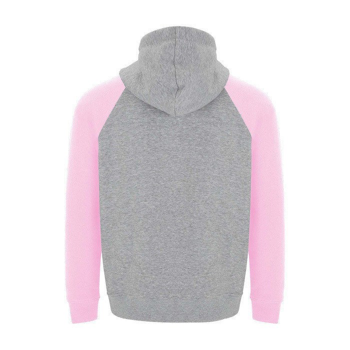Felpa con cappuccio unisex bicolore. Cappuccio con collo incrociato e occhielli in metallo. Cappuccio interno a contrasto, cordoncino e maniche raglan. Tasca a canguro. Polsini e orlo in maglia a coste 1x1 in elastan. Etichetta rimovibile.