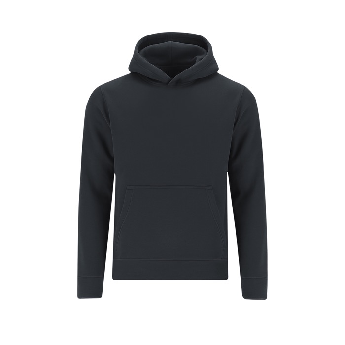 Felpa unisex per bambini con cappuccio foderato in tessuto doppio tono su tono. Realizzata in cotone e poliestere in morbida felpa garzata 280 g/m. Con tasca a marsupio, nastro di rinforzo interno al collo e polsini e vita in maglia a costine 1x1 con elastan per una migliore vestibilità e comfort.