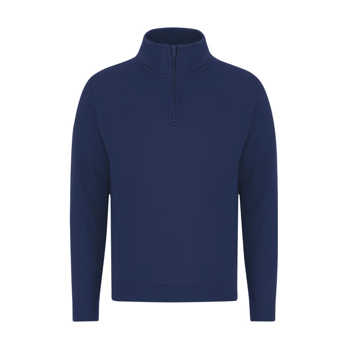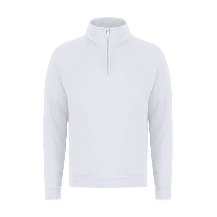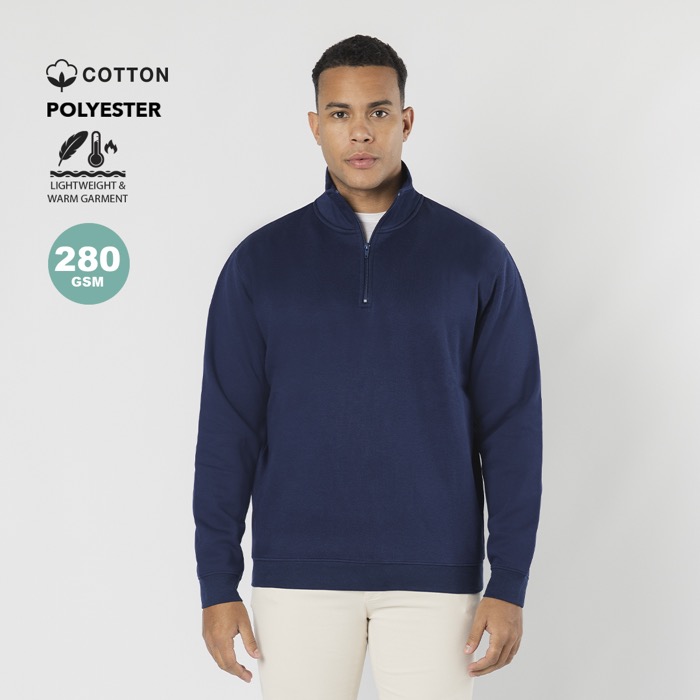 Felpa unisex in misto cotone e poliestere, realizzata in morbida felpa garzata da 280 g/m² per un uso comodo ogni giorno. Presenta una mezza zip tono su tono con tiretto e un collo alto doppio foderato, pensati per offrire calore e una finitura più curata. Polsini e fascia in vita in costina 1x1 con elastan aiutano a mantenere la vestibilità nel tempo. Include cuciture laterali per una caduta più regolare. Adatta per uniformi, fiere e iniziative di branding con logo.