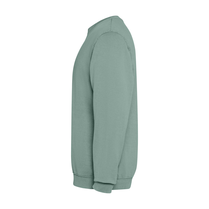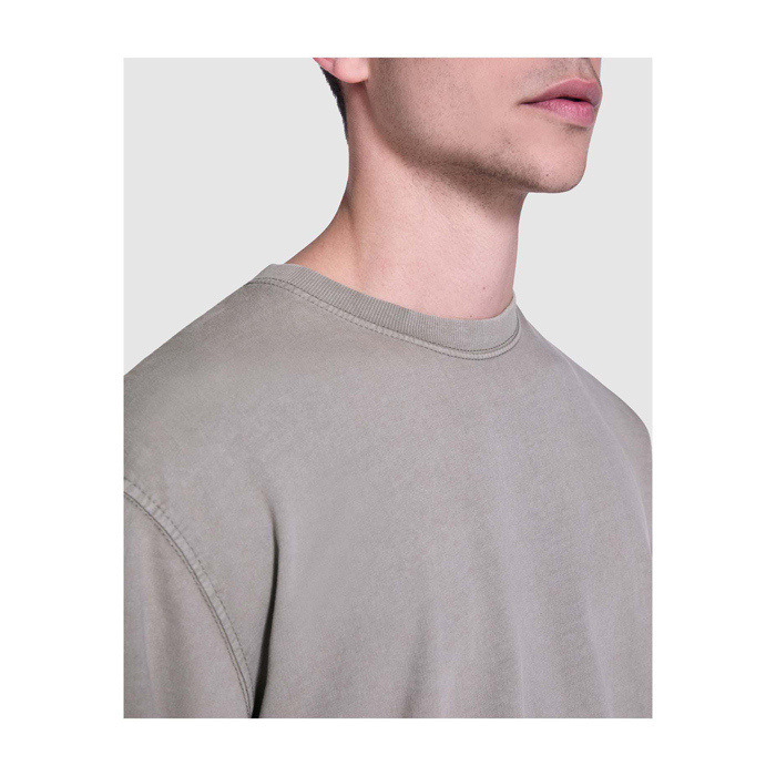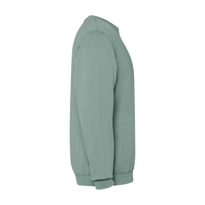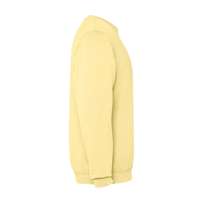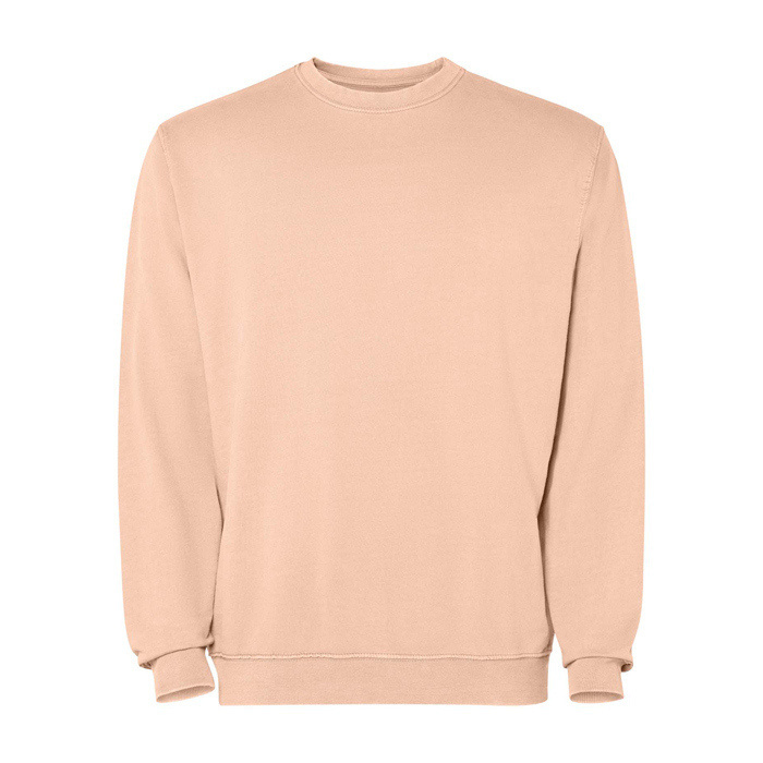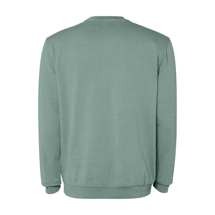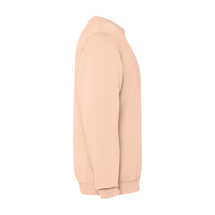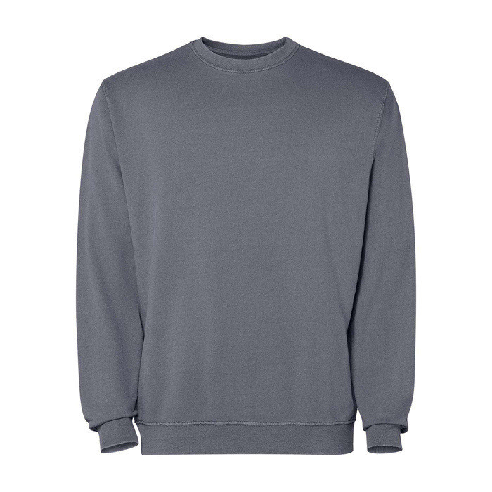 Maglione unisex con finitura con lavaggio acido. Colletto, polsini e orlo a costine 2x1 in tono. Cuciture rinforzate su polsini, orlo, vita e giromanica. Ccopertura tono su tono sulle cuciture sul collo.