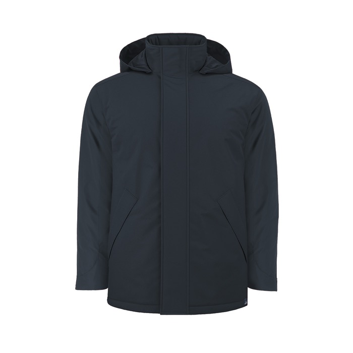 Parka imbottito unisex per bambini realizzato in tessuto impermeabile 100% RPET (poliestere riciclato). Con collo alto e cappuccio regolabile e pieghevole, integrato con chiusura in velcro. Chiusura centrale con zip tono su tono e patta protettiva, tasche laterali con zip e patta fissa coordinata. Include una tasca interna con chiusura in velcro. Polsini regolabili con velcro. Fodera in pile su collo e interno delle tasche per maggiore comfort. Con accesso interno per marcatura su petto sinistro e schiena, ideale per la personalizzazione. Con targhetta RPET tono su tono.