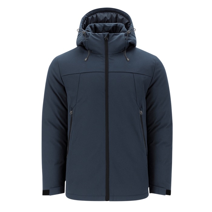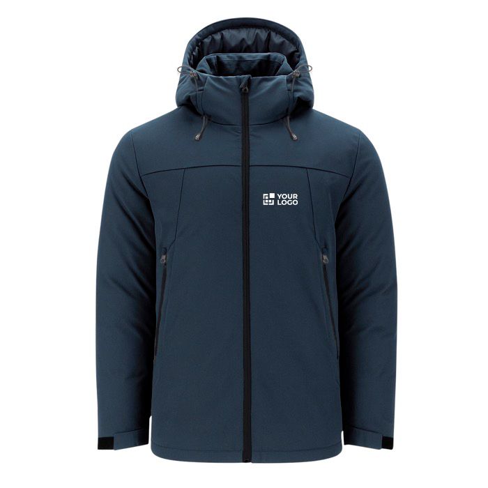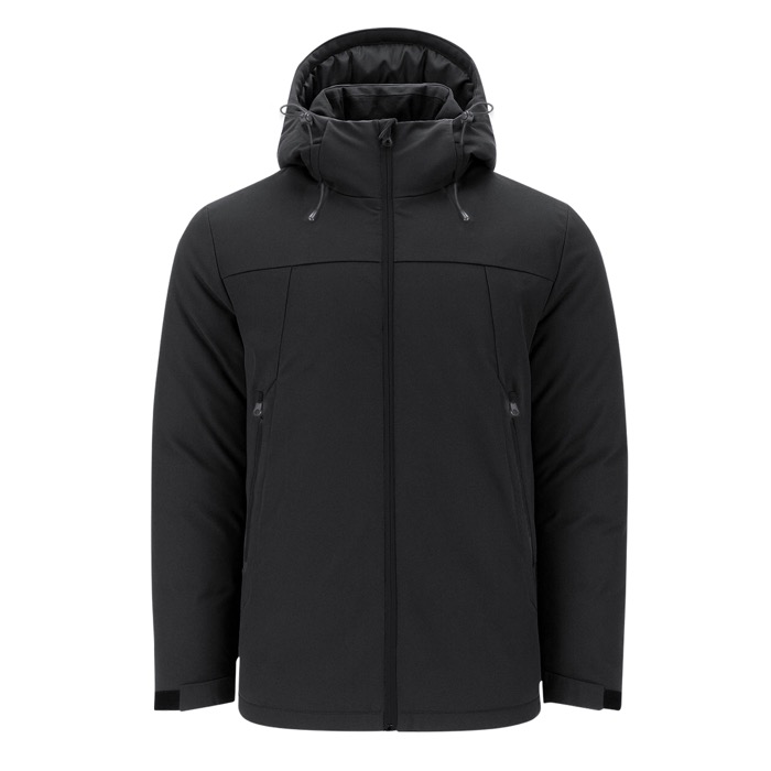 Parka imbottito unisex con cappuccio fisso regolabile. Dotato di chiusura frontale con zip nera e protezione per il mento per maggiore comfort e protezione, due tasche laterali con zip nera e polsini regolabili con velcro.