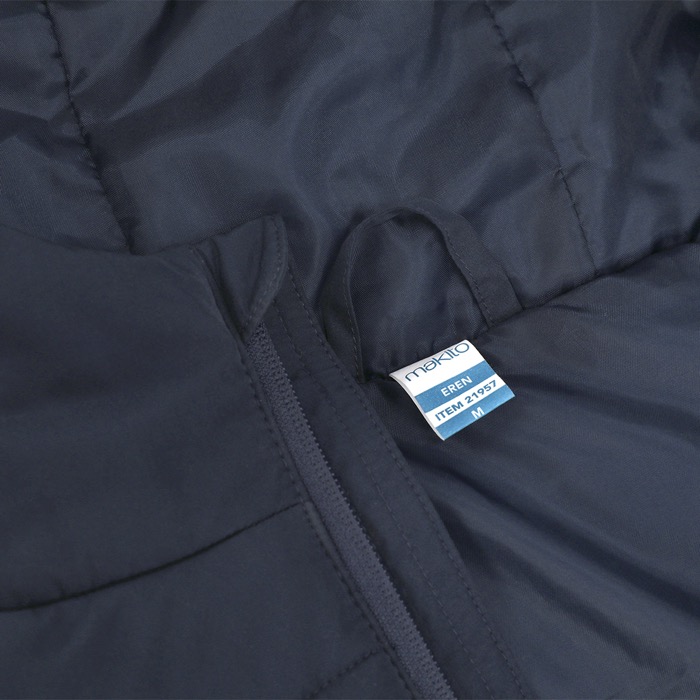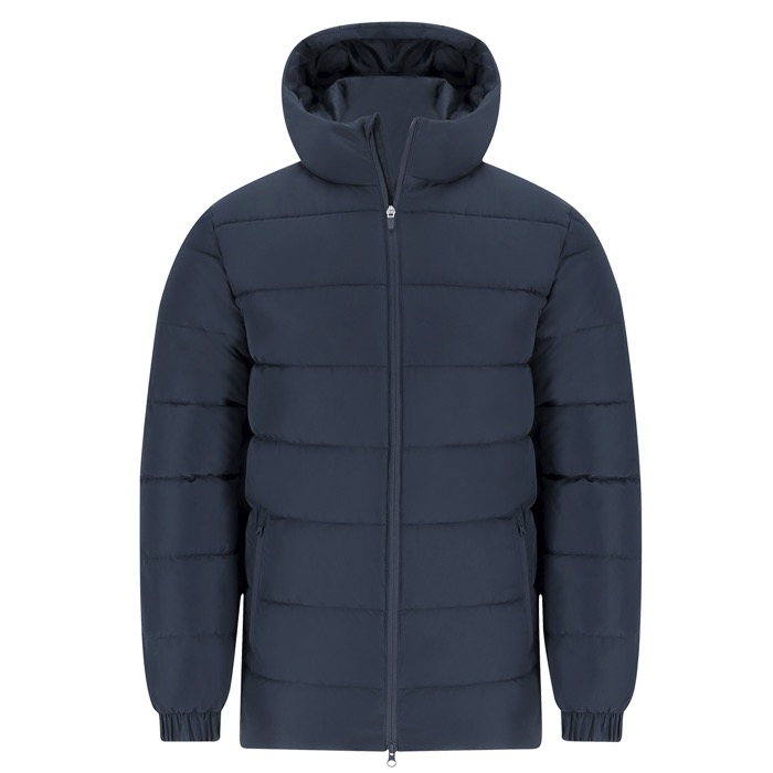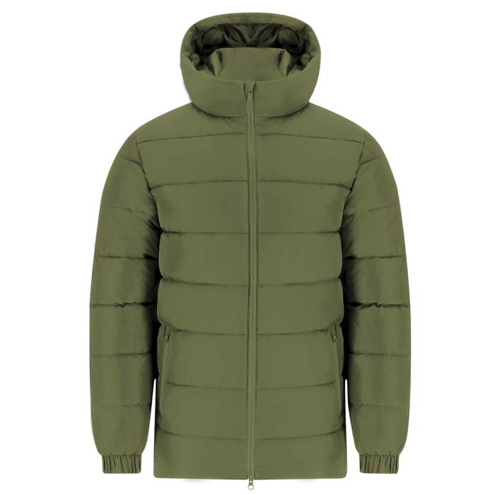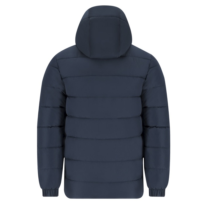 Parka imbottito unisex con cappuccio fisso e visiera integrata. Dotato di chiusura frontale con zip tono su tono a doppio cursore e protezione per il mento, polsini elastici per una vestibilità confortevole e due tasche laterali con chiusura a zip coordinata. Include accesso interno per marcatura su petto sinistro e schiena, ideale per la personalizzazione.