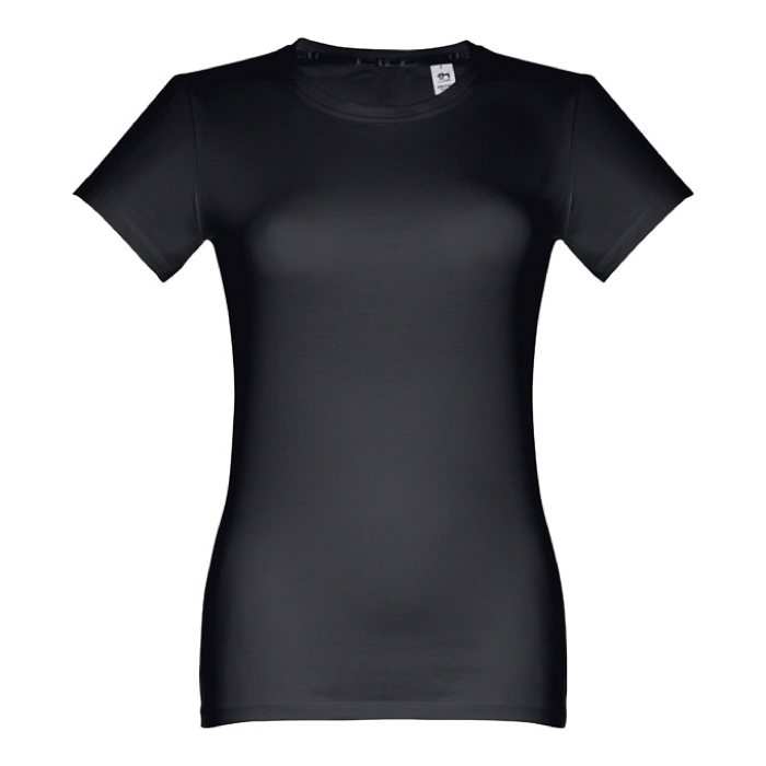 T-shirt aderente donna in cotone resistente, personalizzabile con logo.