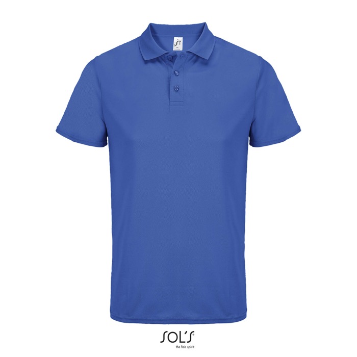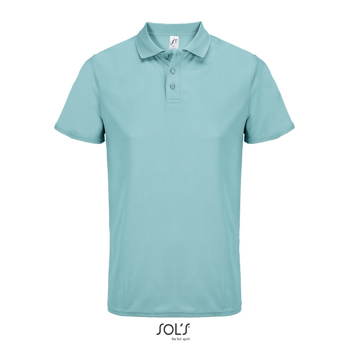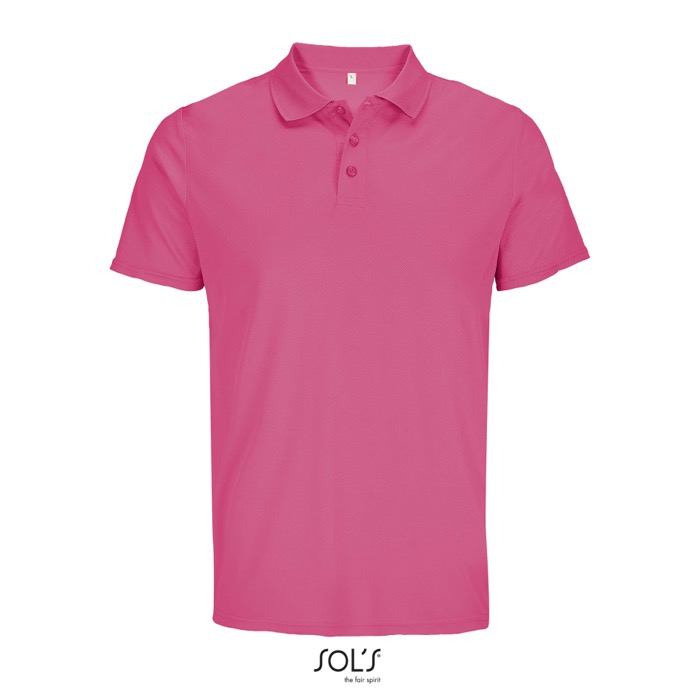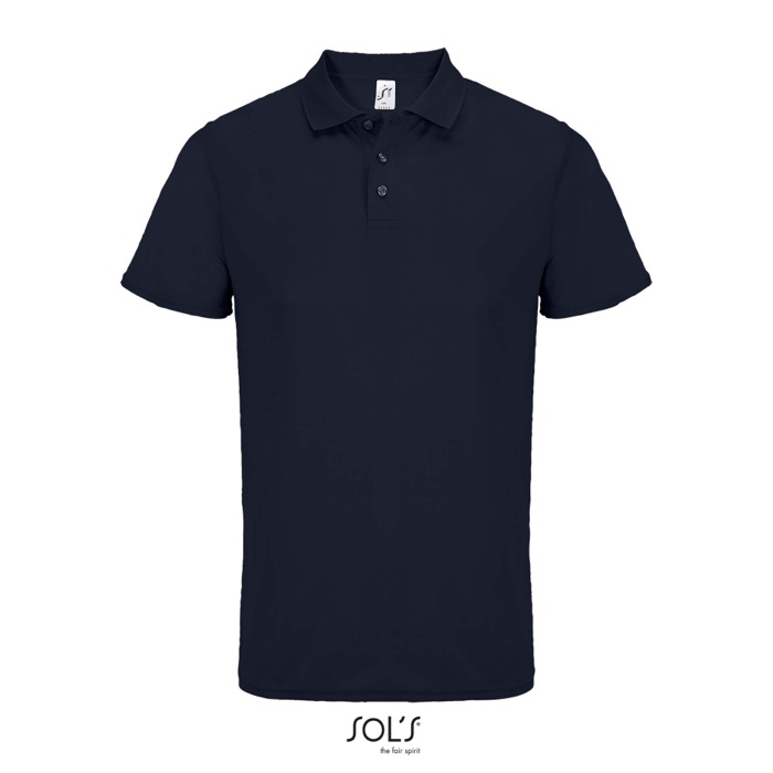 - Design unisex a maniche corte con 3 bottoni, perfetta per personalizzazioni aziendali.