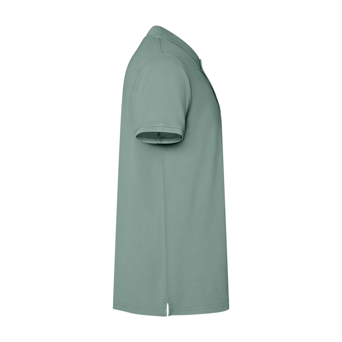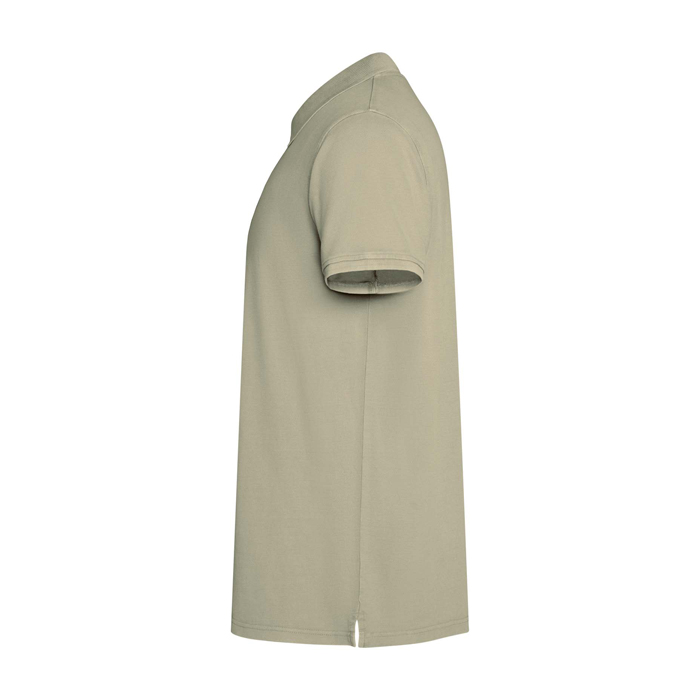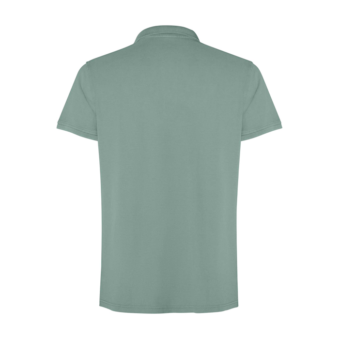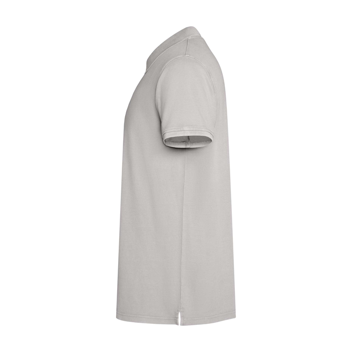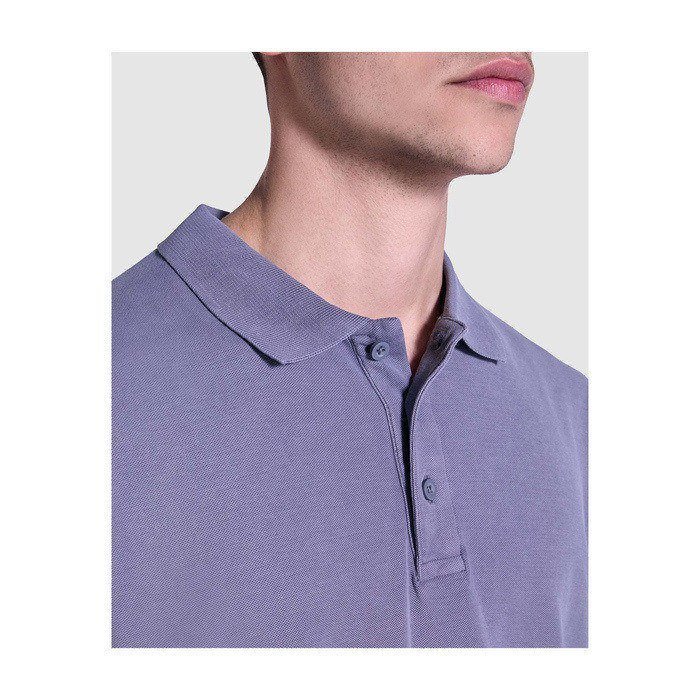 Polo unisex a maniche corte. Finitura con lavaggio acido. Colletto e polsini a costine 1x1, con aperture laterali. Copertura tono su tono sulle cuciture. Allacciatura con tre bottoni.