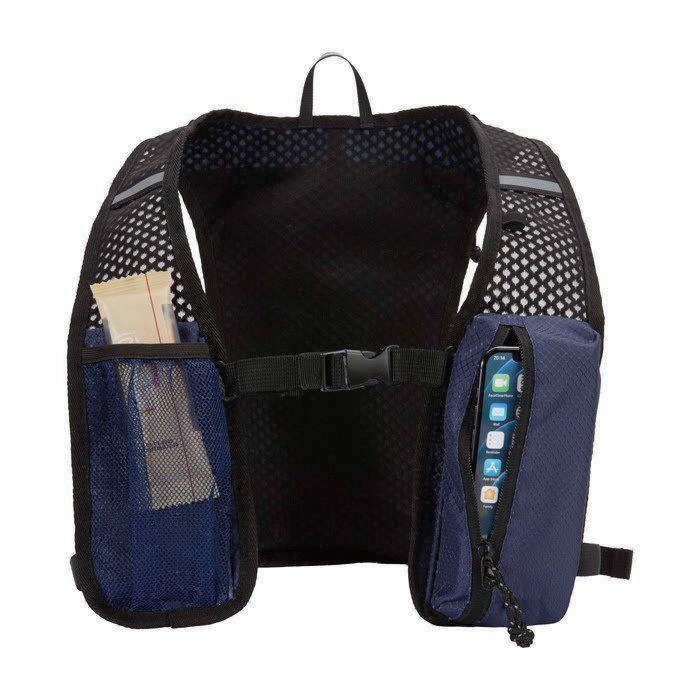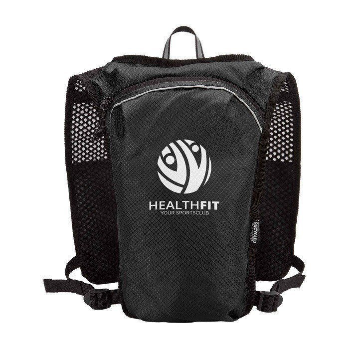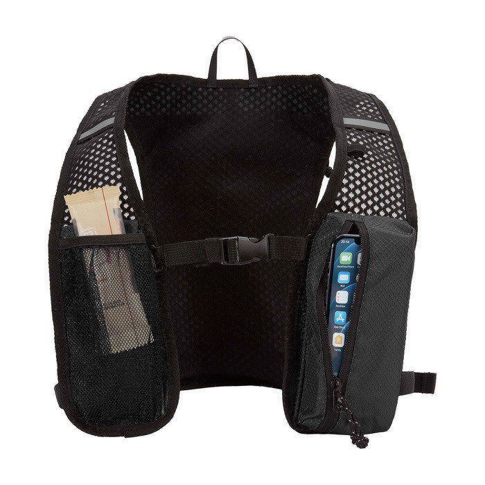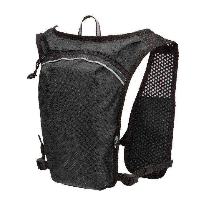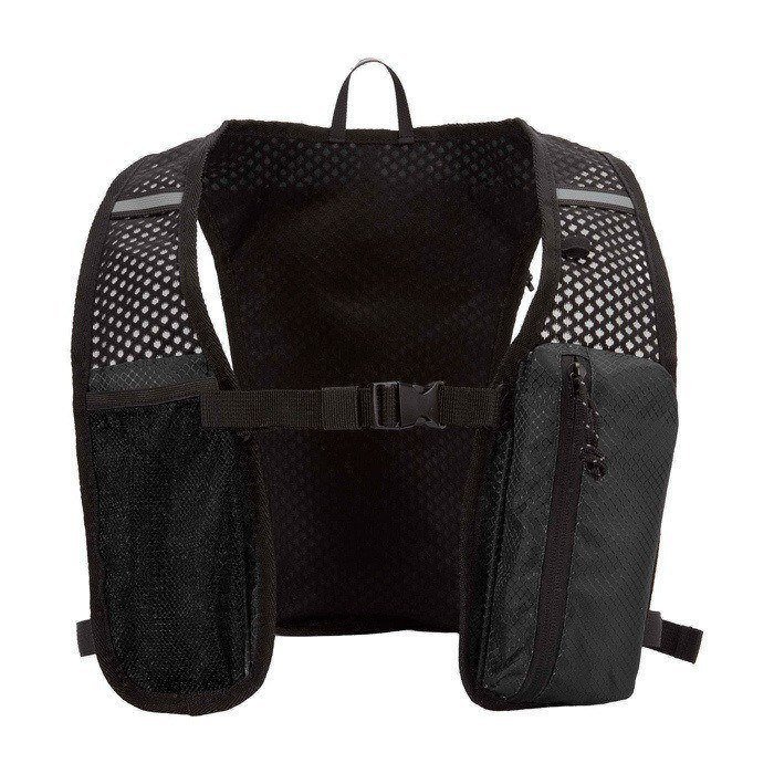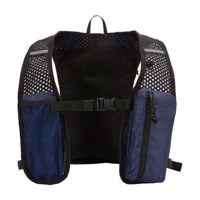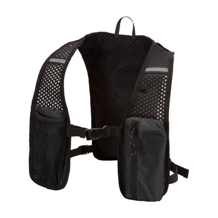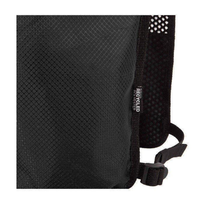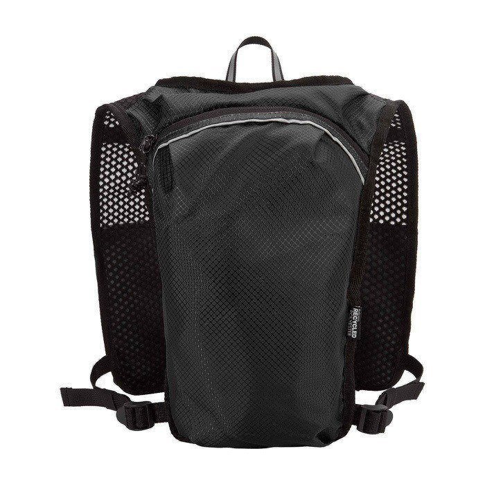 Il gilet per la corsa con zaino per l'idratazione è realizzato in tessuto ripstop riciclato certificato GRS con finitura idrorepellente. Include una fodera in PET riciclato certificato GRS ed elementi catarifrangenti per una migliore visibilità. Questo zaino è stato progettato per la corsa su lunghe distanze, i sentieri e le attività all'aperto. La parte posteriore del gilet è dotata di un design in rete traspirante per il massimo comfort. Include spallacci regolabili e due tasche anteriori sul petto per riporre le bottiglie, i piccoli accessori o il telefono cellulare. All'interno è presente uno scomparto separato adatto per uno zaino per l'idratazione da 1,5 litri (non incluso). Capacità: 5 litri.