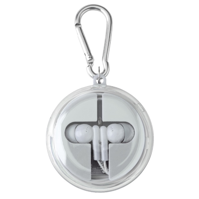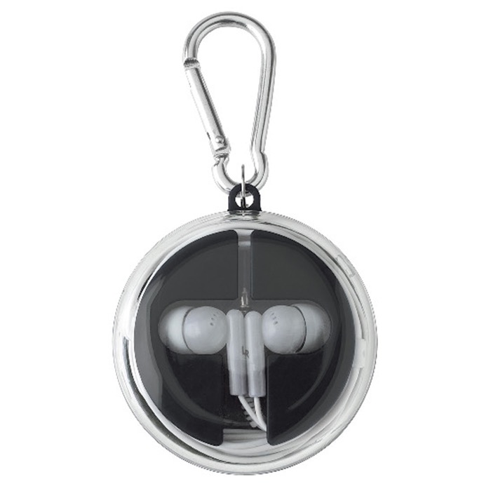 Auricolari in custodia con moschettone che include cavetto di ricarica