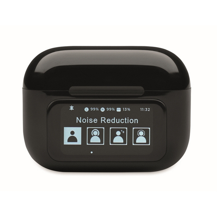 Cuffie stereo wireless True Wireless Stereo (TWS) 5.0 in ABS (30 mAh) con ANC/ENC e microfono, base di ricarica 230 mAh. Display e controllo touch.
