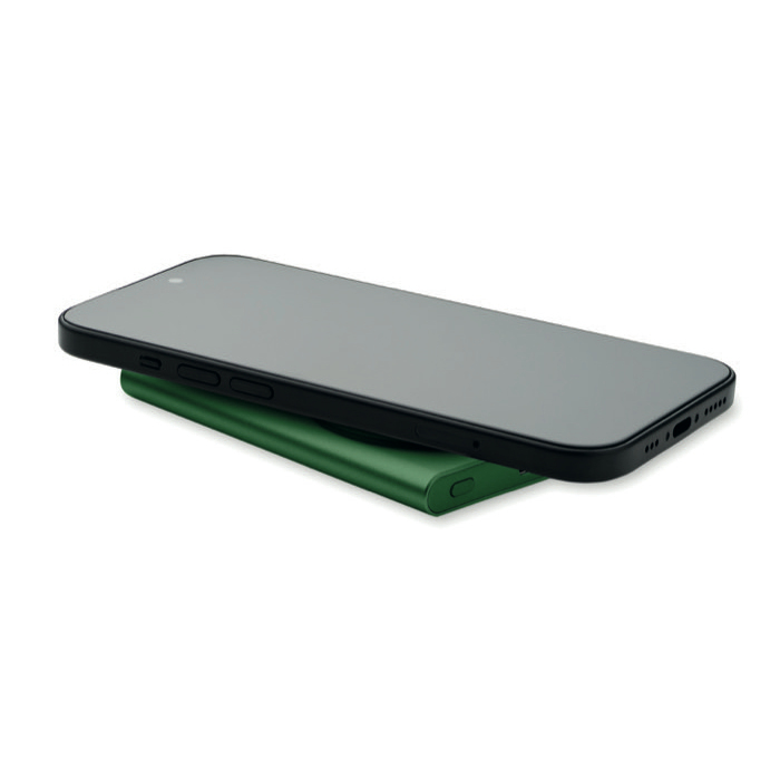 Caricatore wireless magnetico da 15W realizzato in alluminio riciclato, con powerbank da 5.000 mAh/19,25Wh. Supporta la tecnologia di ricarica rapida a 20W. Dispone di una spia di stato della carica wireless, spia di alimentazione (25%) e luce verde per la carica rapida. Ingresso: Tipo-C DC 5V/2,4A, 9V/2A. Uscita Tipo-C: DC 5V/3A, 9V/2,22A, 12V/1,66A. Il tempo di ricarica del power bank dallo 0% al 100% è di circa 4-5 ore (5 V) e 3-4 ore (9 V). La luce bianca lampeggia continuamente quando è in corso la ricarica. Quattro spie di alimentazione fisse indicano che la carica è completa. La luce verde nel primo indicatore LED indica una ricarica rapida. Supporta lo standard USB Power Delivery (PD) per ricaricare il più recente computer portatile MacPro®. Questo prodotto non è impermeabile.