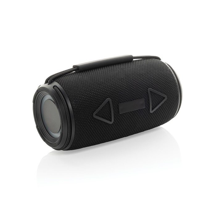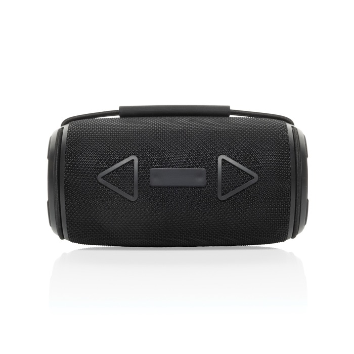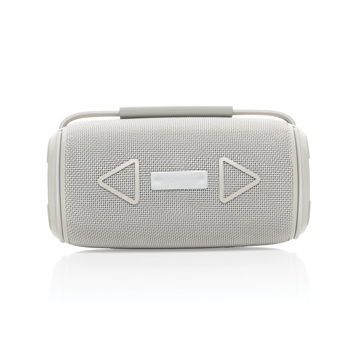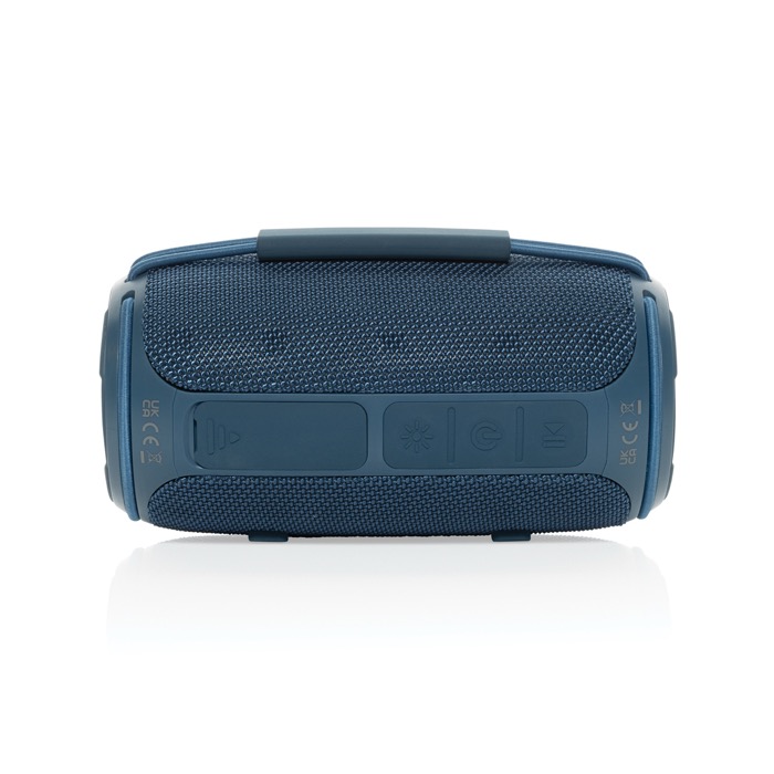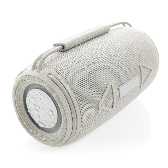Altoparlante da 16W realizzato in plastica ABS riciclata con certificazione RCS e tessuto RPET, combina prestazioni audio eccezionali con durabilità e basso impatto ambientale. Con una potenza di uscita di 16W e doppi subwoofer, offre bassi profondi e un suono nitido per un’esperienza d’ascolto immersiva. La certificazione di impermeabilità IPX4 lo rende adatto all’uso all’aperto. La maniglia integrata e la batteria ricaricabile agli ioni di litio da 1500 mAh garantiscono portabilità e fino a 7 ore di riproduzione al 50% del volume, mentre la tecnologia Bluetooth 5.3 assicura una connessione fluida e accoppiamento automatico. Include microfono e funzione capture, ideale per chiamate in vivavoce. Il contenuto riciclato totale è del 37% rispetto al peso totale dell’articolo. Questo altoparlante è privo di PVC e viene consegnato in una confezione kraft.