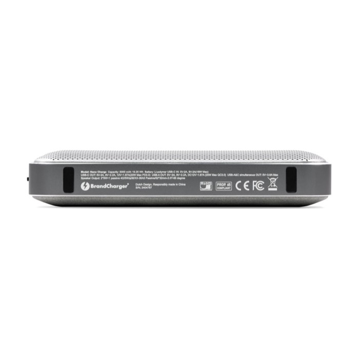 BrandCharger Nano Charge è un compatto altoparlante wireless e powerbank combinato, progettato per la comodità portatile. Dispone di un sistema a doppio driver da 10W Ambient Harmonics™ per un suono chiaro, e di un powerbank integrato da 5.000 mAh con ricarica rapida fino a 20W (compatibile con PD3.0 e QC3.0). Include eleganti pulsanti in alluminio per pausa, riproduzione e controllo del volume, dotato di connessione Bluetooth e USB-C, ideale per professionisti in movimento.
