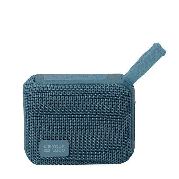 Altoparlante stereo Bluetooth® in plastica con finitura opaca e griglia frontale in poliestere 300D in plastica riciclata, pensato per l’uso quotidiano in ufficio o durante eventi. Integra un microfono per chiamate in vivavoce e un pannello di controllo superiore per gestire riproduzione e volume. Include radio FM e lettore per schede fino a 32 GB, utile quando non si vuole dipendere dal cellulare. Si ricarica tramite cavo USB-A a USB-C e include un laccetto in pelle sintetica per il trasporto. Una buona soluzione per attività di branding in fiere o come regalo per il team.