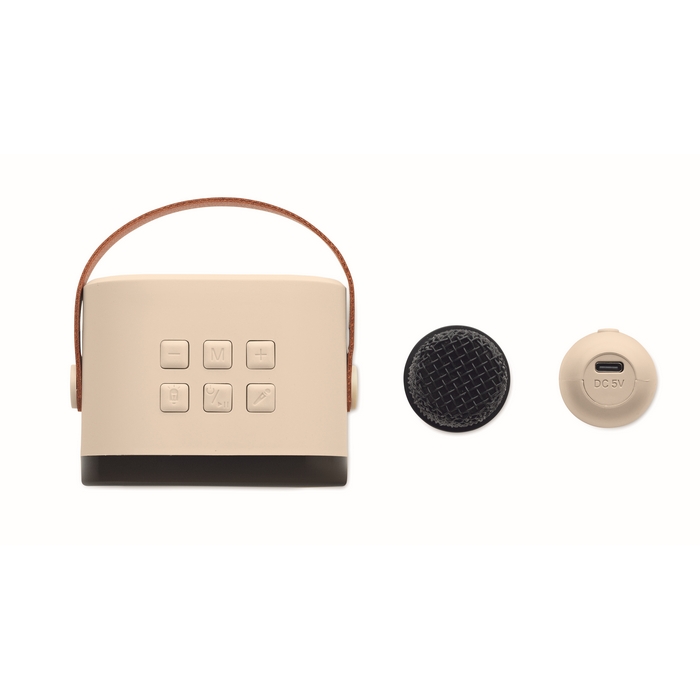 Per un'associazione di marca che evoca gioia e creatività, offri un set karaoke con altoparlante in stile vintage. Dotato di 5W di potenza, luci LED e microfono, un altoparlante di questo tipo trasforma ogni occasione in un momento di intrattenimento memorabile. È un gadget che promuove esperienze di gruppo e divertimento, ideale per eventi aziendali o come regalo motivazionale. Offrilo per stimolare il morale dei tuoi team o per coinvolgere i clienti in modo originale, legando il tuo brand a momenti positivi e a un'immagine dinamica e moderna.