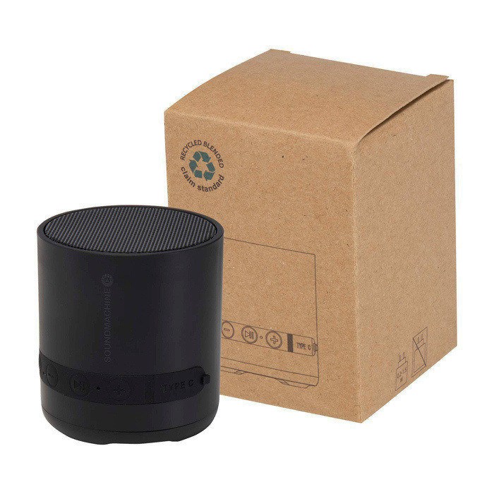 Lo speaker wireless da 3 W con tecnologia Bluetooth® è realizzato in plastica riciclata e presenta una porta di ricarica Type-C, controlli per il volume, un pulsante per riprodurre la musica/mettere in pausa/effettuare chiamate e di un microfono integrato. Grazie alla funzionalità TWS (True Wireless Stereo), è possibile associare due altoparlanti per un'esperienza audio stereo.