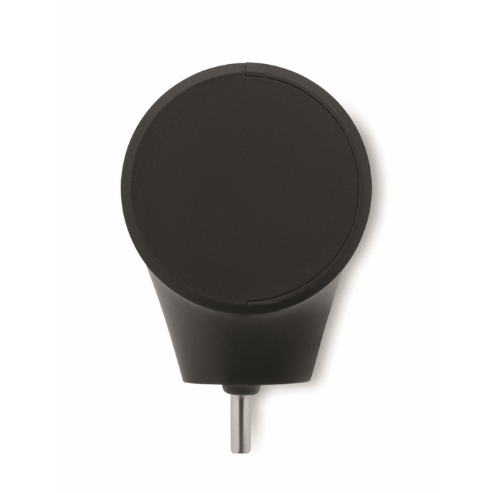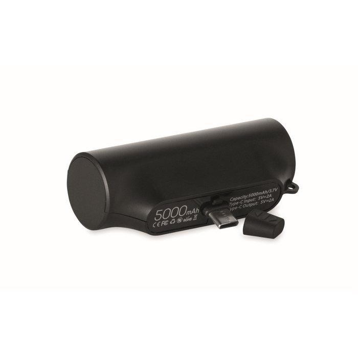 Power bank in ABS con capacità di 5000 mAh, pensato per ricaricare smartphone e altri dispositivi quando non c’è una presa nelle vicinanze. Include un supporto integrato per mantenere il telefono in una posizione comoda durante le videochiamate o mentre si ricarica. Dispone di connessione USB-C in ingresso/uscita e ricarica rapida PD da 20 W per ridurre i tempi di attesa sui dispositivi compatibili. Formato compatto, facile da trasportare in zaino o valigetta, utile in viaggi, fiere e kit di benvenuto aziendali.