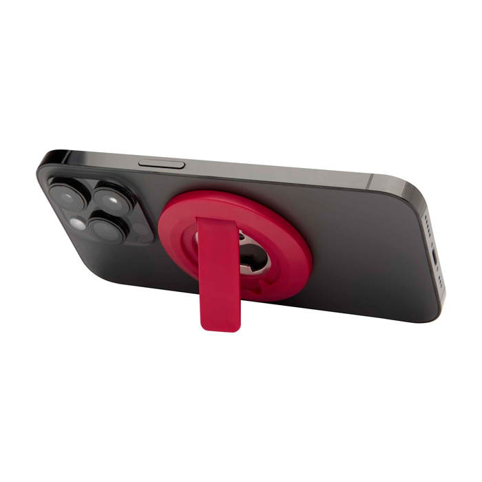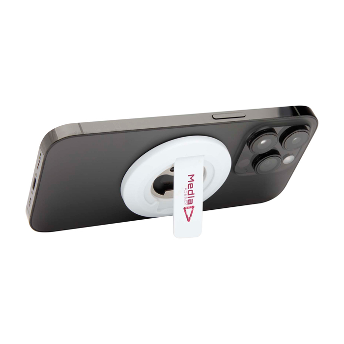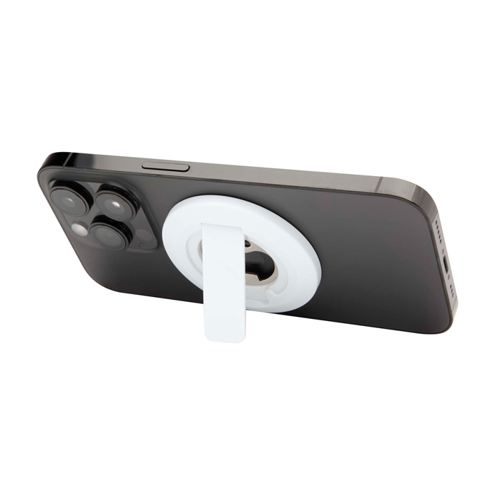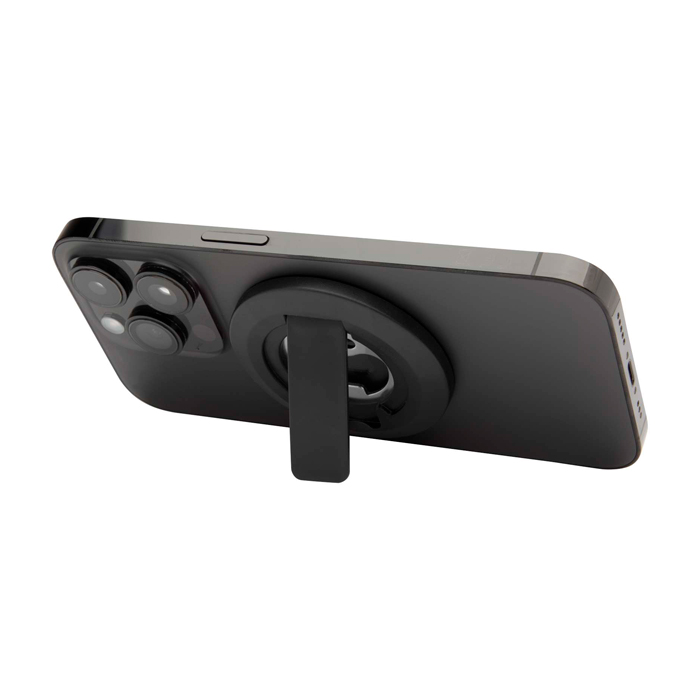 Il supporto è un accessorio ingegnoso 2 in 1 realizzato in plastica riciclata. Si attacca saldamente agli iPhone 12 e versioni successive con un'elevata tenuta magnetica e funge anche da pratico supporto per il telefono. Inoltre, è dotato di un apribottiglie incorporato, che lo rende perfetto per l'uso quotidiano o durante gli spostamenti.