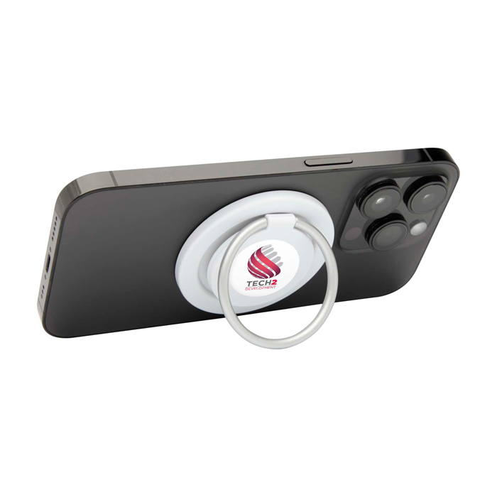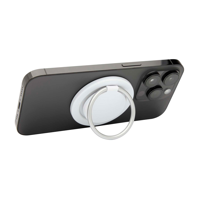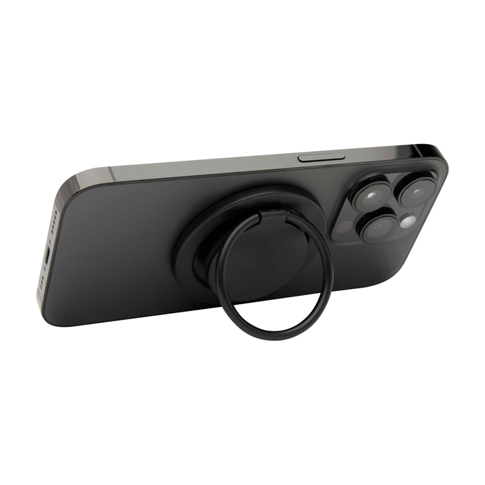 L'accessorio per il telefono è pratico e realizzato in plastica riciclata. Progettato per gli iPhone 12 e versioni più recenti, è dotato di un'elevata tenuta magnetica e di un supporto ad anello integrato che, oltre a offrire un'aderenza sicura, funge anche da supporto, perfetto per la visione a mani libere e per una maggiore sicurezza del telefono.