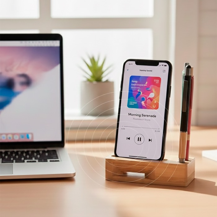Porta cellulare personalizzato da scrivania con lettore musicale