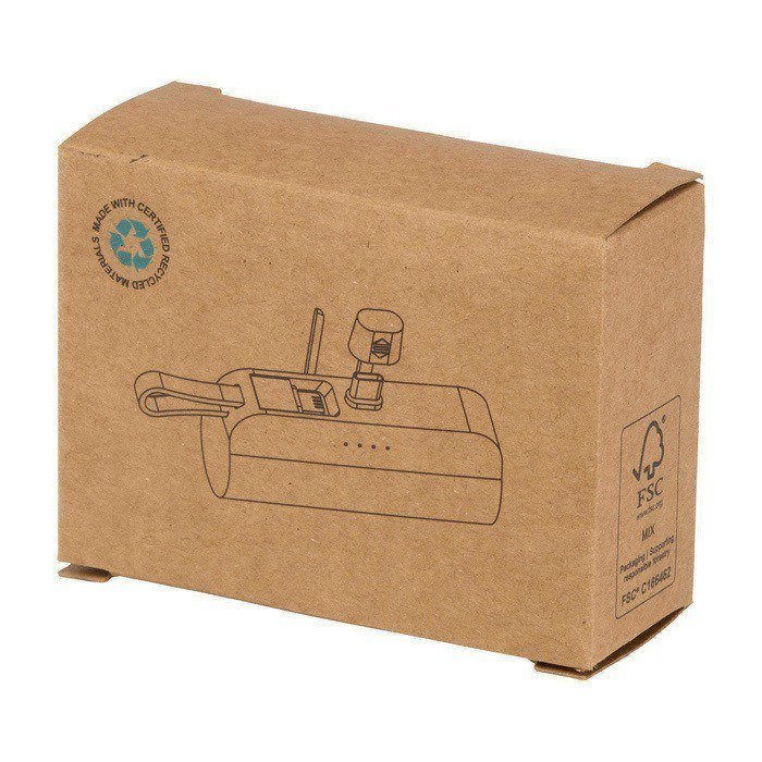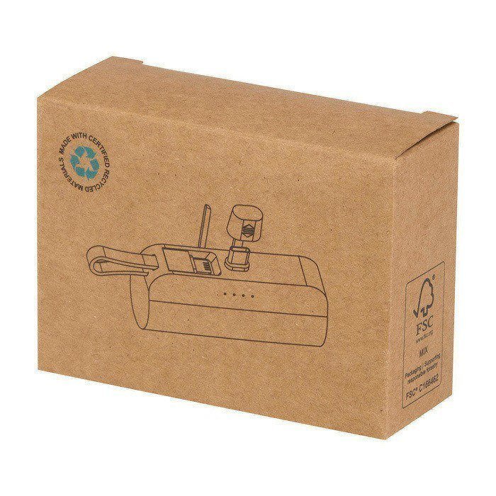 Il power bank è una soluzione di ricarica compatta e pratica realizzata in plastica riciclata. È dotato di un connettore di Tipo-C integrato, di un supporto per telefono pieghevole incorporato e di un cavo 2-in-1 integrato con connettore Lightning/micro-USB. Con una porta di ingresso/uscita di Tipo-C per una maggiore flessibilità, è ideale per mantenere il telefono carico e supportato ovunque.