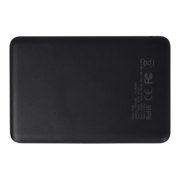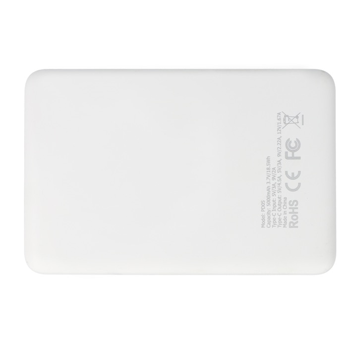 Powerbank da 5000 mAh dotato di Power Delivery, garantisce una ricarica rapida ed efficiente per tutti i dispositivi. Con un design sottile, è perfetto per i viaggi e l'uso quotidiano. Si ricarica completamente in sole 2-3 ore. Realizzato in ABS riciclato. Include un cavo USB-C da 22 cm.