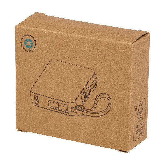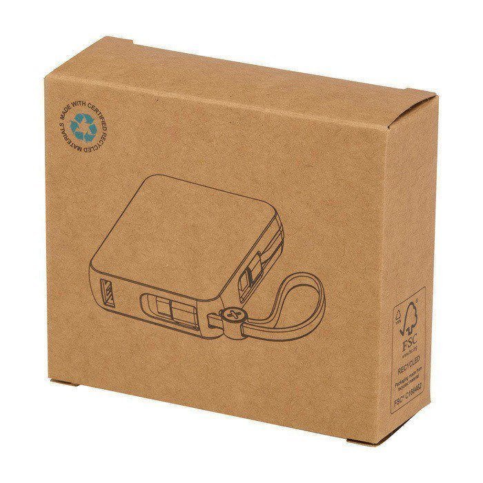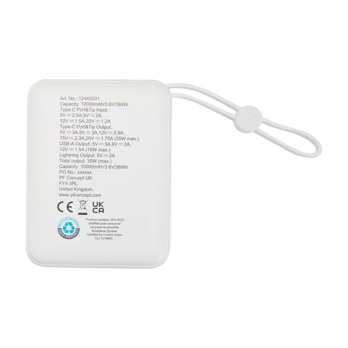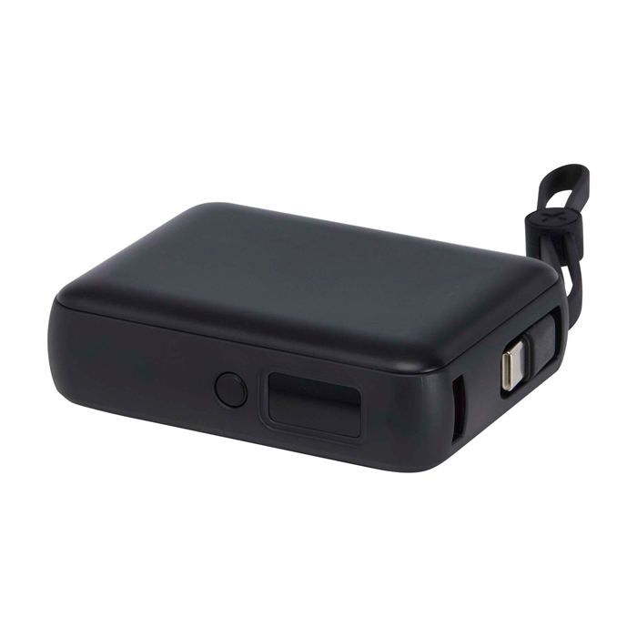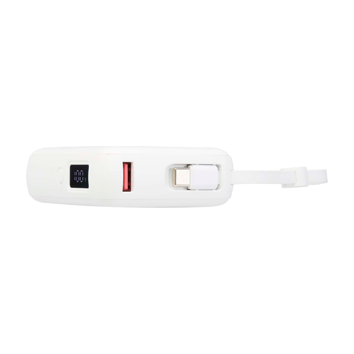 Il power bank da 10.000 mAh è realizzato in plastica riciclata ed è progettato per una ricarica rapida e comoda ovunque ci si trovi. È dotato di una porta di ingresso/uscita USB-C in/out da 35 W e di una porta USB-A da 18 W, oltre che di un cavo USB-C e Lightning integrato, in modo da poter ricaricare i dispositivi senza bisogno di accessori aggiuntivi. Un display digitale mostra la percentuale di carica all'istante, facilitando il monitoraggio dei livelli di autonomia della batteria. Perfetto per mantenere carichi smartphone e tablet per tutto il giorno.