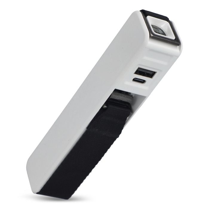 Preparati al viaggio con questo powerbank 5 in 1: pesa fino a 50 kg, ricarica con 2600 mAh, misura in cm, controlla la temperatura in °C e illumina con torcia integrata. Compatto, pratico e in ABS riciclato.