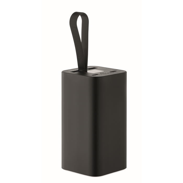 Power bank personalizzabile con schermo digitale e ricarica rapida. Carica più dispositivi contemporaneamente e portalo comodamente grazie al gancio in silicone.