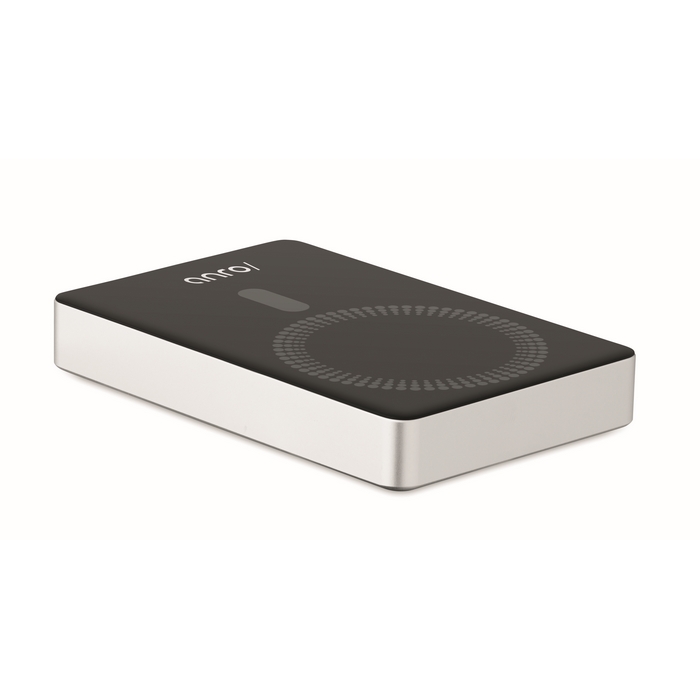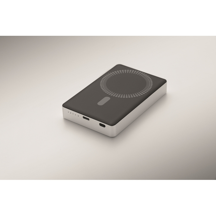 Power bank in alluminio riciclato con capacità di 10.000 mAh e indicatore luminoso per controllare a colpo d’occhio il livello di carica. Integra la ricarica wireless da 15 W, utile per scrivanie, sale riunioni o spazi di accoglienza clienti. Consente anche la ricarica via cavo con PD da 20 W, pensata per ricariche rapide e un’alimentazione stabile nella quotidianità. Un’opzione pratica per welcome pack, eventi o azioni di fidelizzazione.