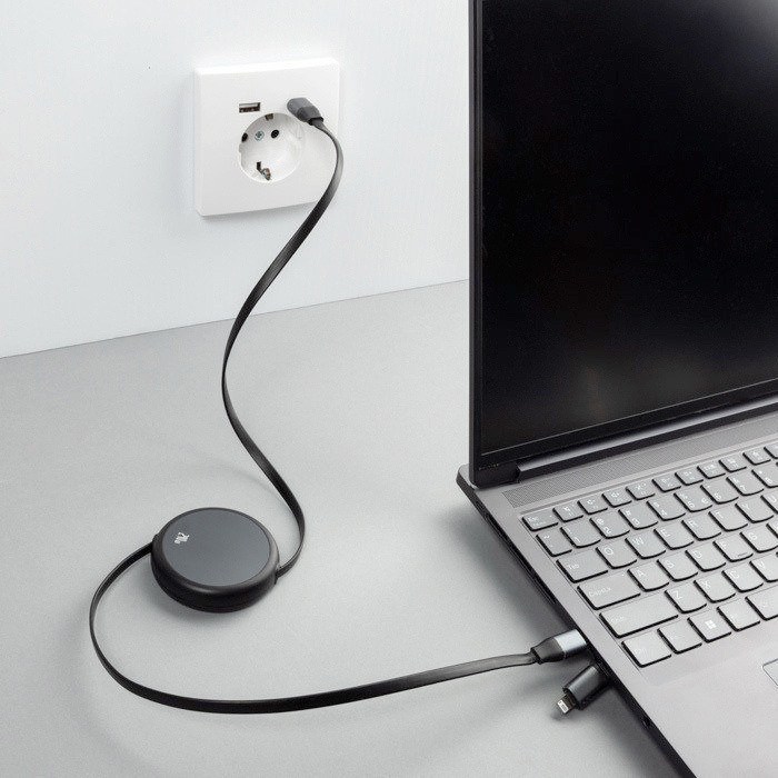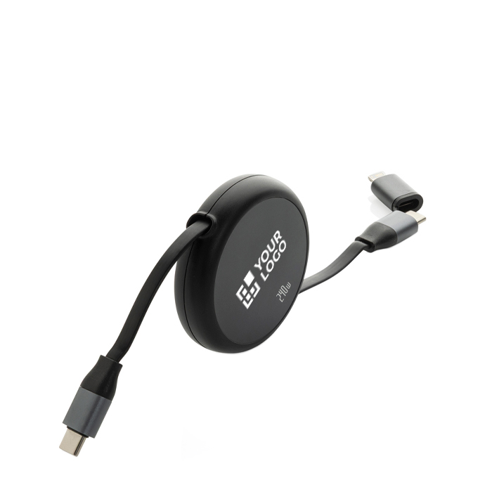 Un cavo retrattile che porta il tuo logo ovunque, a eventi, in ufficio e in auto