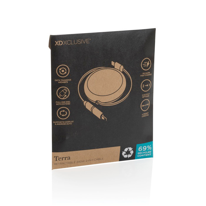 Cavo retrattile 2 in 1 in alluminio riciclato per ricarica e dati 240W