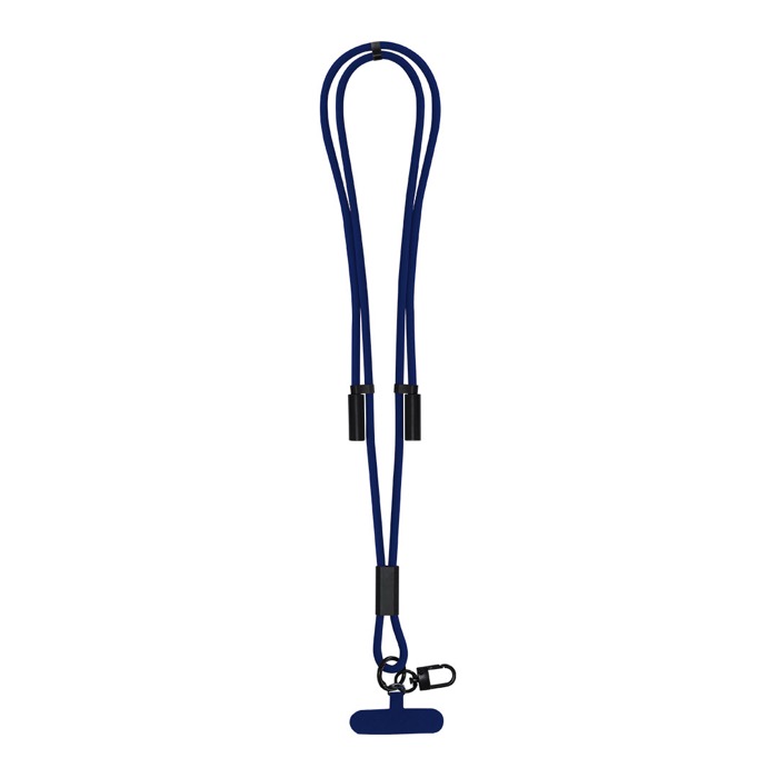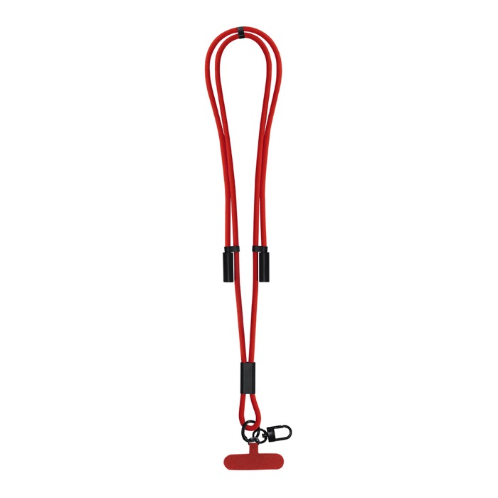Lanyard porta smartphone in poliestere di plastica riciclata (RPET) con cavo di ricarica integrato per tenere il telefono sempre a portata di mano e, allo stesso tempo, gestire ricariche rapide. Include nastro colorato, moschettone metallico girevole nero e accessorio di regolazione per adattarlo all’uso quotidiano in ufficio o in spostamento. Consente ricarica e trasferimento dati tramite connessione USB-C (Universal Serial Bus Tipo C), con ingresso USB-C e uscita USB-C, fino a 60W. Consigliato per accrediti interni, fiere e attività di branding con logo.
