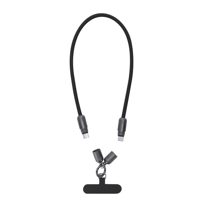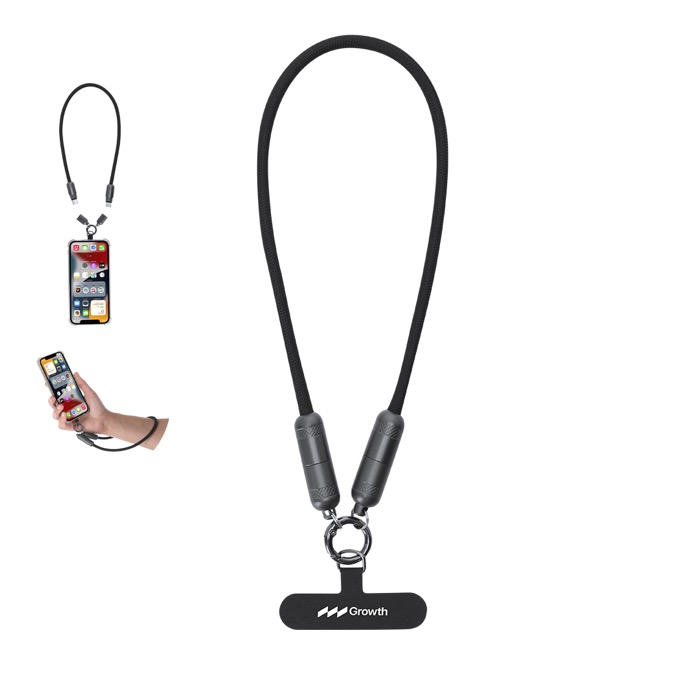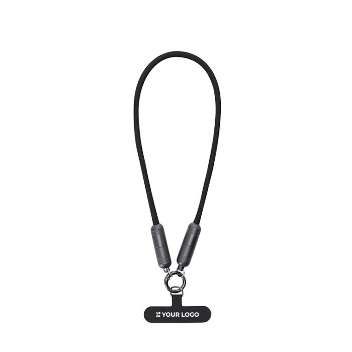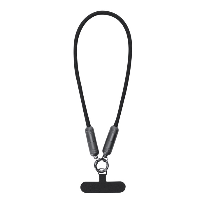 Lanyard cavo di ricarica, funzione di trasferimento dati e supporto per smartphone. Con ingresso/uscita Tipo C e potenza di 60W, che consente la ricarica rapida. Funzionalità e comodità in un unico accessorio.