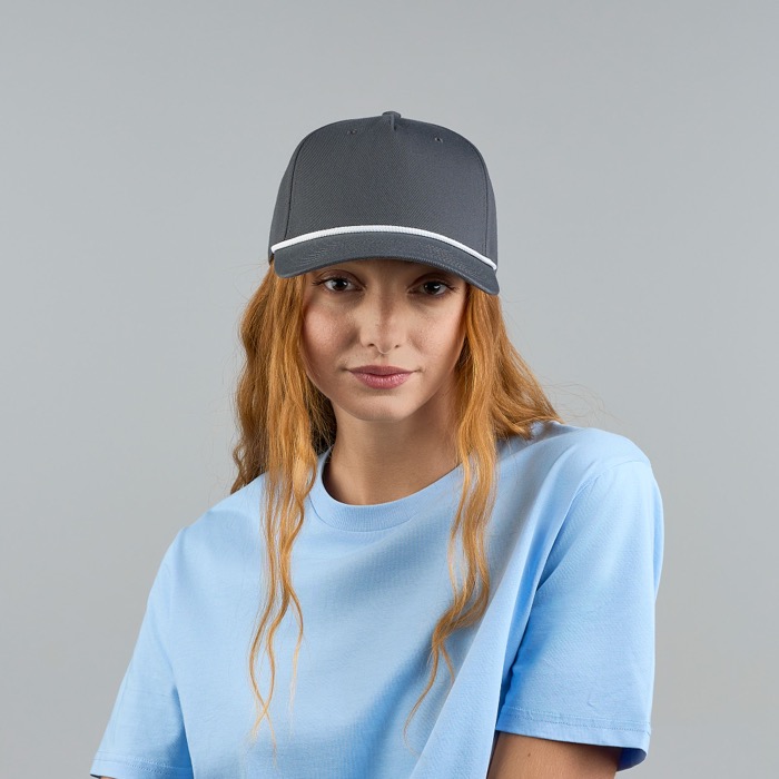 Cappellino da baseball a 5 pannelli realizzato in poliestere riciclato, pensato per l’uso quotidiano nelle attività aziendali. Ha una struttura che mantiene la forma, chiusura snapback per una regolazione rapida e visiera riciclata. Il cordino a contrasto sulla visiera aggiunge un dettaglio visivo che aiuta a distinguerlo durante eventi o campagne. L’ampio pannello frontale facilita la personalizzazione del logo con ottima visibilità. Consigliato per fiere, team di negozio, promozioni stagionali o attività di brand.