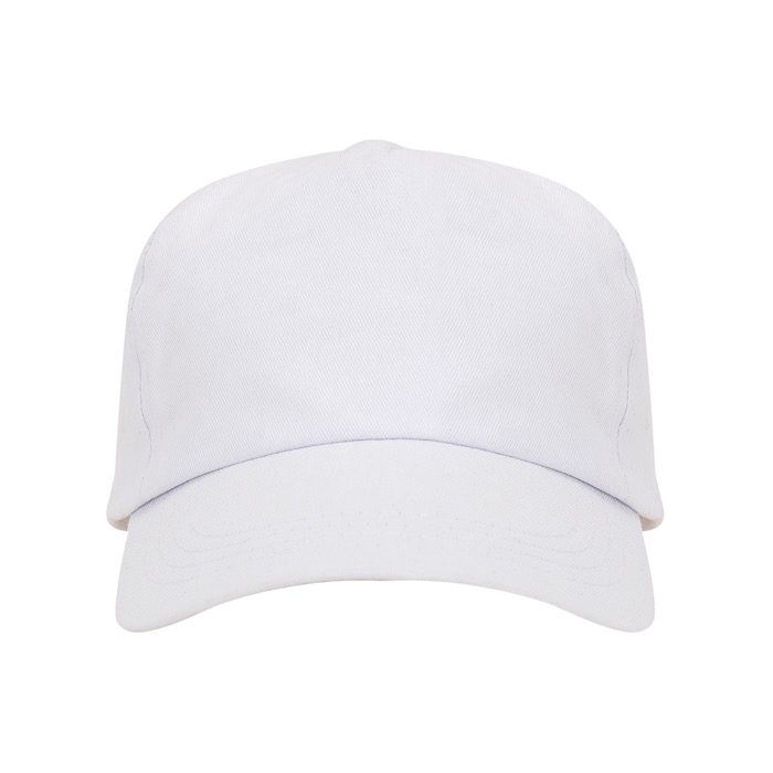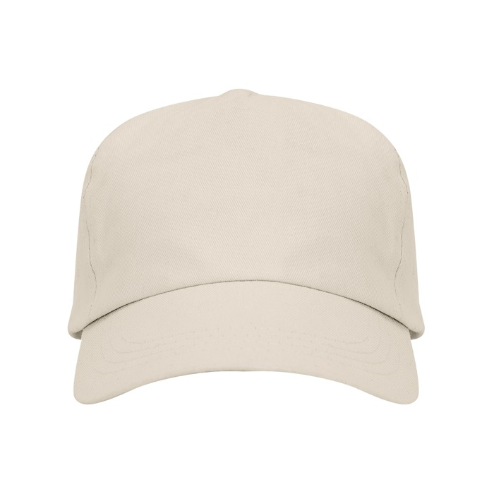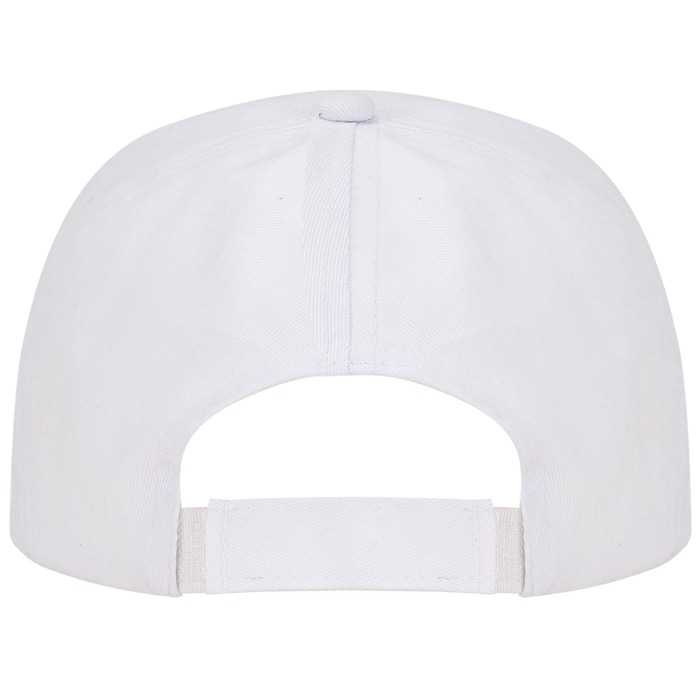 Un’opzione semplice e pratica per eventi all’aperto, questo è un cappellino a cinque pannelli con chiusura posteriore in velcro e fori di ventilazione ricamati.