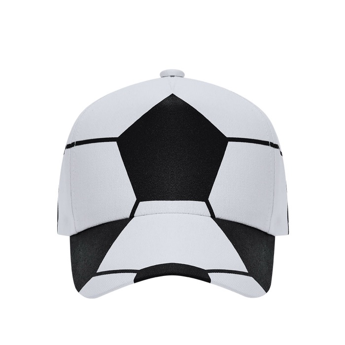 - Cappellino sportivo a 5 pannelli con design tipo pallone da calcio