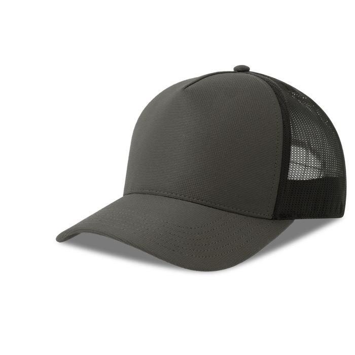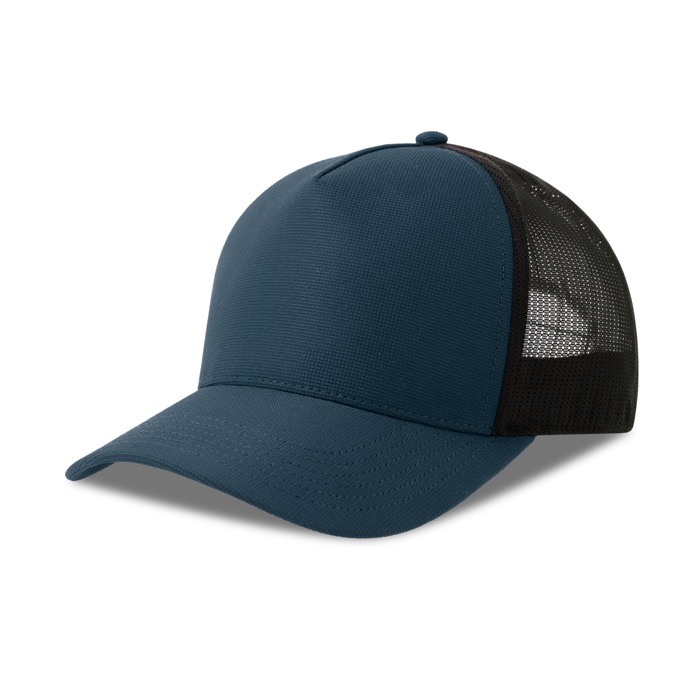 Cappellino trucker con rete elastica e UPF 50, pensato per aumentare la presenza del brand nelle campagne all’aperto. Con finitura idrorepellente.