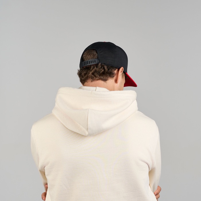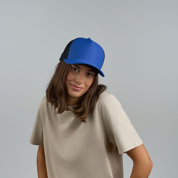 - Cappellino trucker chiuso con vestibilità adattabile grazie alla rete elastica