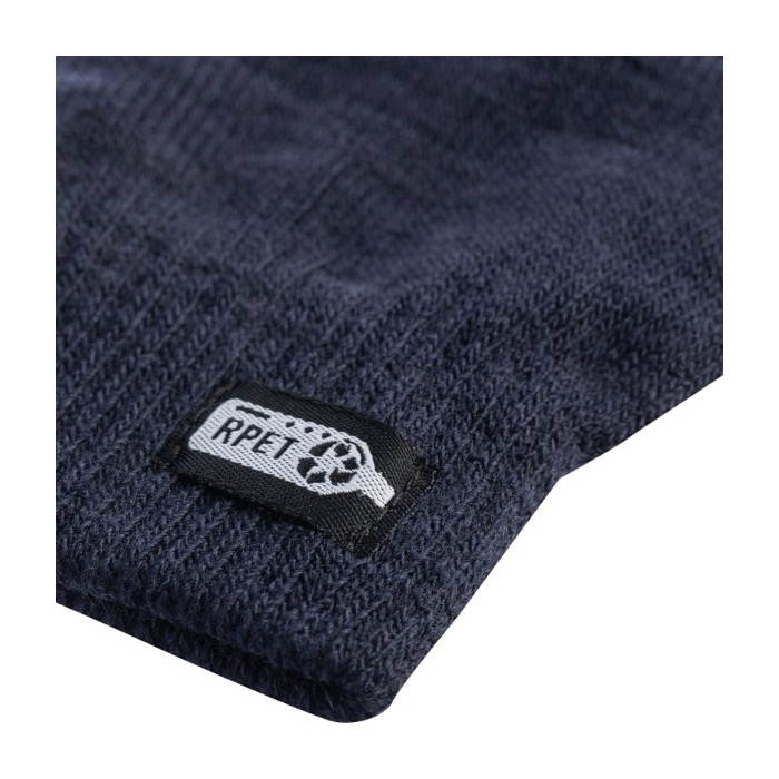 Guanti touchscreen in rPET con rivestimento conduttivo su tre dita per l’uso dello schermo, include un’etichetta in rPET all’esterno e un’etichetta con le informazioni per il lavaggio all’interno.