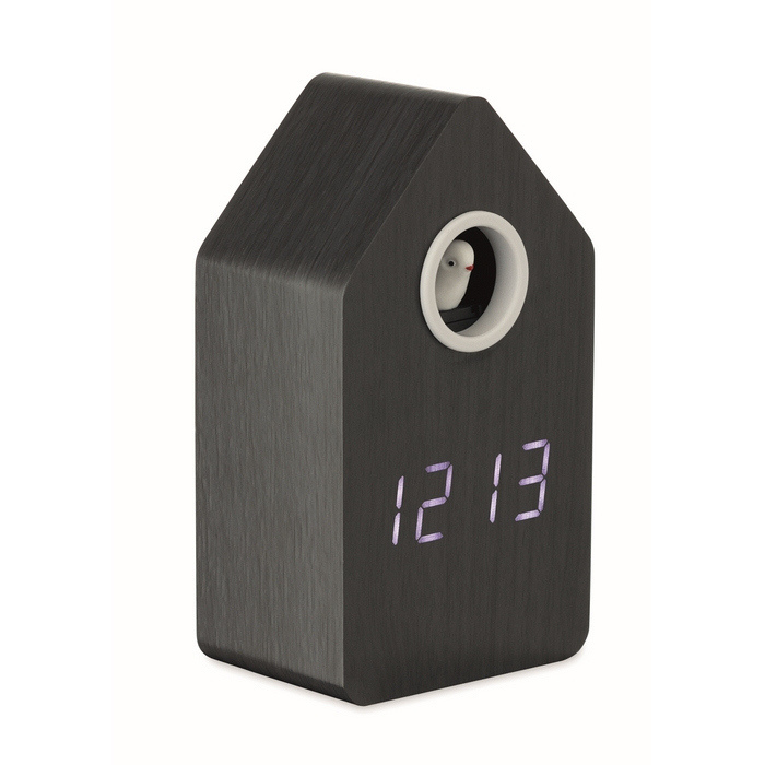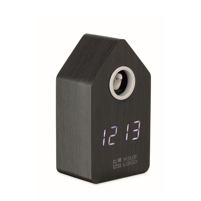 Orologio a cucù con sveglia, suono di uccellino e schermo LED bianco, un oggetto distintivo che rende la vostra azienda protagonista in qualsiasi ambiente.