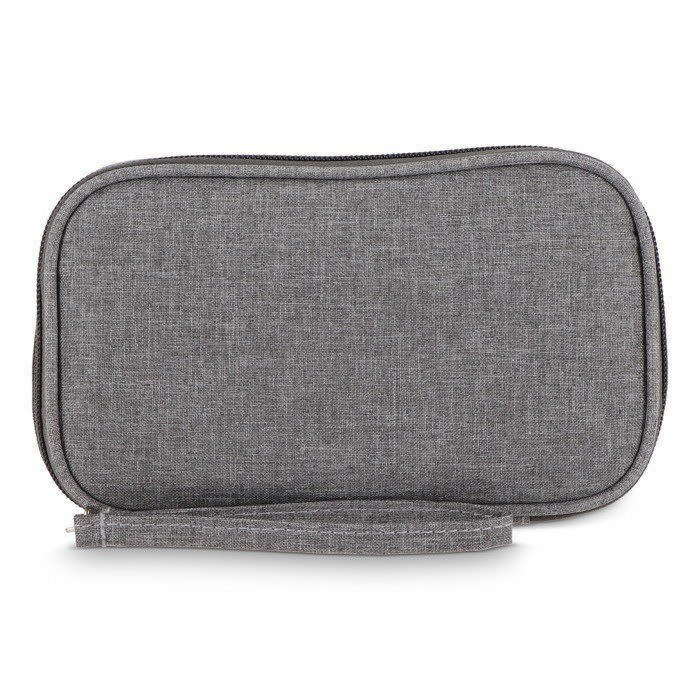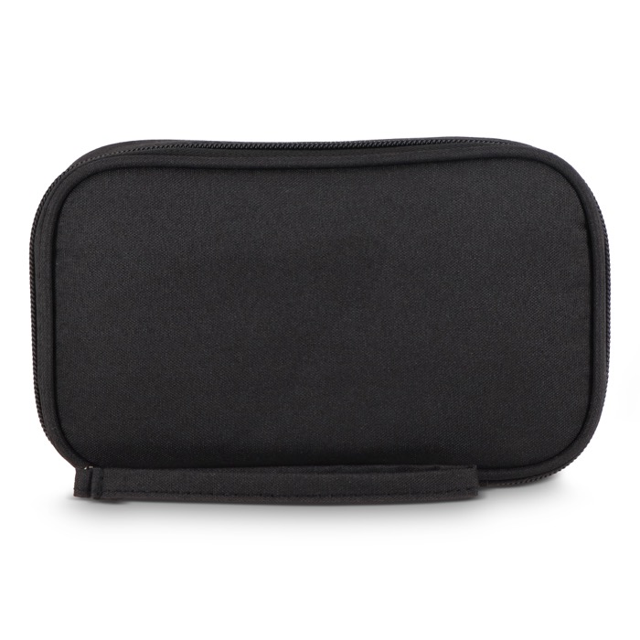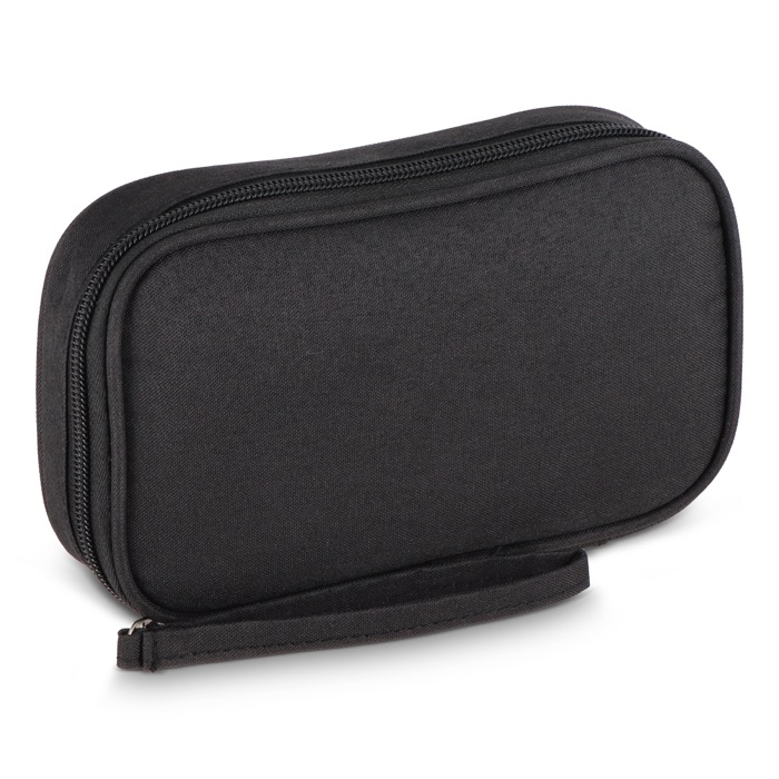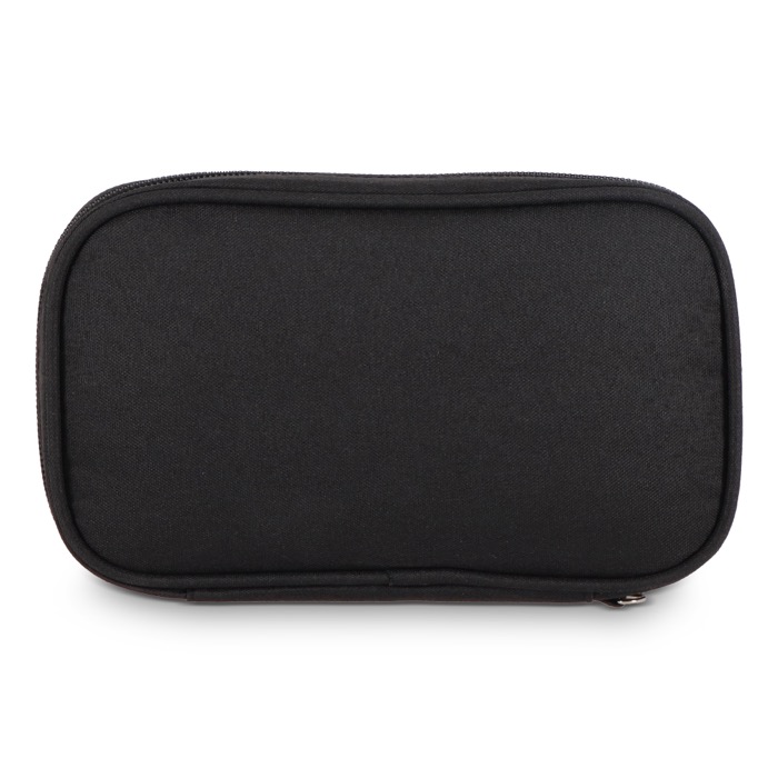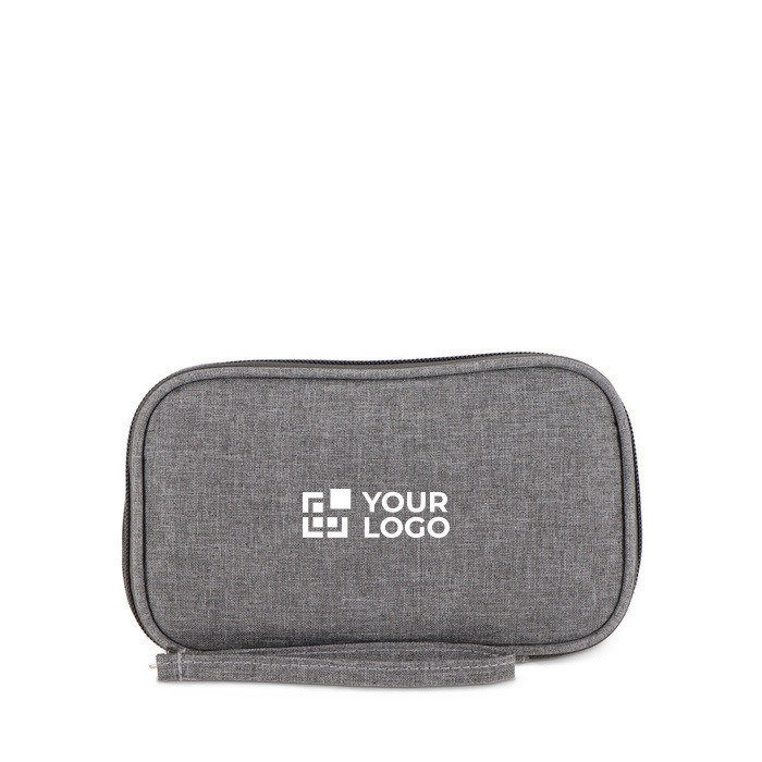 Astuccio organizer in plastica riciclata rPET 300D pensato per riporre e trasportare accessori tecnologici in poco spazio. Include un cinturino da polso, pratico per gli spostamenti tra riunioni o viaggi di lavoro. Dispone di tasche in rete per separare adattatori e piccoli accessori, oltre a una fascia elastica con chiusura in velcro che blocca cavi e power bank per evitare grovigli. Un’opzione utile per iniziative di onboarding, fiere ed eventi in cui si distribuiscono accessori con logo.