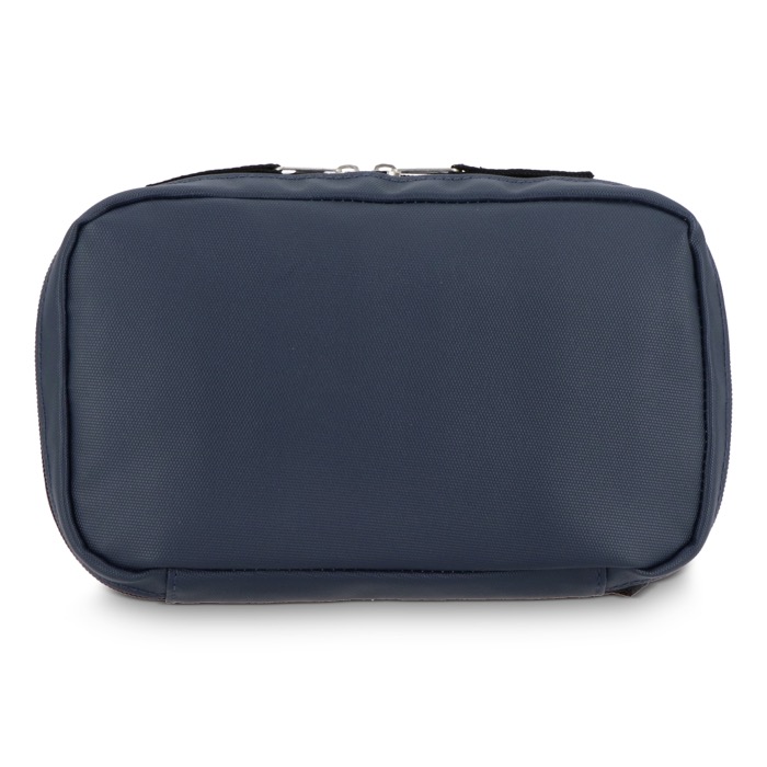 Borsa organizer in plastica riciclata 210D con rivestimento in pelle sintetica, pensata per riporre accessori tecnologici senza mischiare tutto. Include un cinturino da polso per trasportarla comodamente e un ampio scomparto principale con cerniera. All’interno incorpora tre tasche piccole per cavi, caricabatterie e power bank, mantenendo ogni elemento a portata di mano. La doppia cerniera facilita l’apertura da entrambi i lati e velocizza l’accesso durante gli spostamenti. Opzione pratica per attività di branding in viaggi aziendali o eventi.