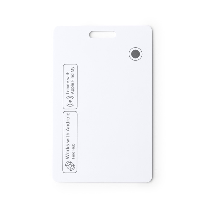 Localizzatore anti-smarrimento in plastica in formato scheda, pensato per essere portato nel portafoglio, nello zaino o nel porta badge senza occupare spazio. Resiste agli schizzi e funziona con iOS e Android tramite app mobile e connessione Bluetooth, rendendone semplice il controllo nella vita di tutti i giorni. Integra una funzione di ricerca con segnale acustico per localizzarlo rapidamente quando lo si perde di vista. Si ricarica con caricabatterie a ricarica wireless, evitando i cavi e semplificando la logistica. Utile per identificazioni interne, consegne durante eventi o azioni di fidelizzazione.