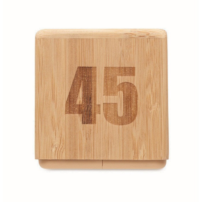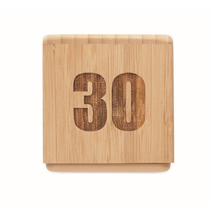 Timer in bambù con conto alla rovescia, pensato per controllare i tempi in modo semplice in ufficio, in cucina o nelle sale riunioni. Il formato compatto consente di posizionarlo su scrivanie, banconi o aree comuni senza occupare spazio. Il display digitale facilita la lettura rapida del tempo rimanente e l’utilizzo risulta immediato per diversi utenti. Funziona con 2 pile AAA, non incluse, per una sostituzione semplice. Adatto come articolo di merchandising per formazioni, eventi o kit aziendali.
