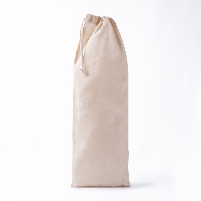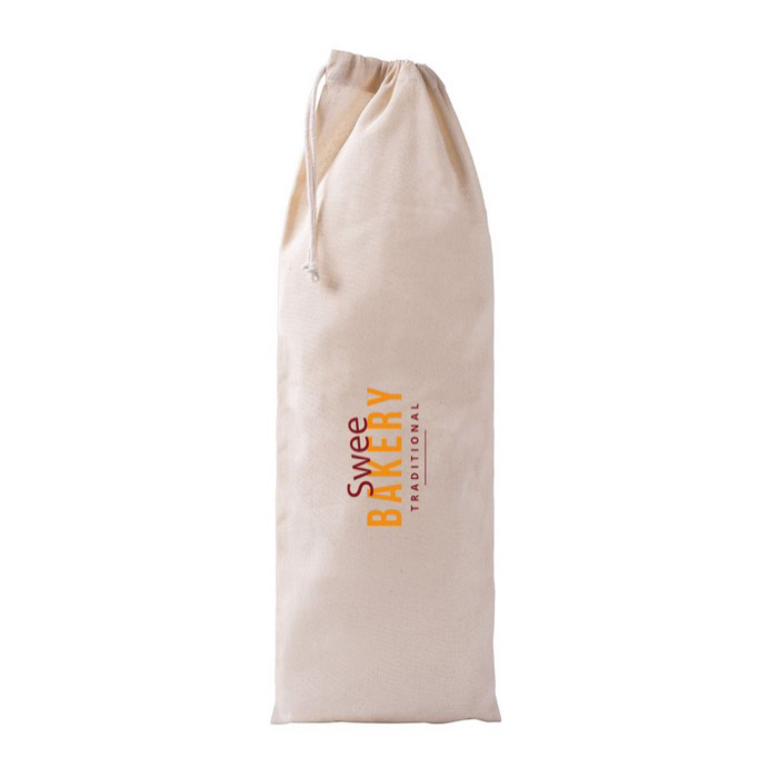 Sfrutta questa sacca in cotone riciclato con chiusura a cordino regolabile. Una scelta più sostenibile per trasportare il pane evitando l’uso di carta.