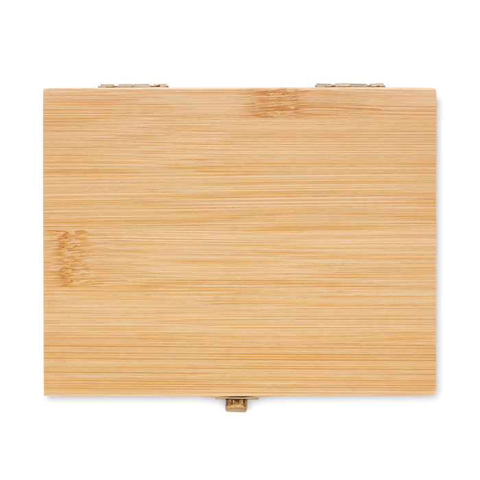 Questo regalo promozionale è composto da una scatola in legno di bambù con 9 cubetti di ghiaccio in pietra riutilizzabili e un paio di pinze per prenderli.