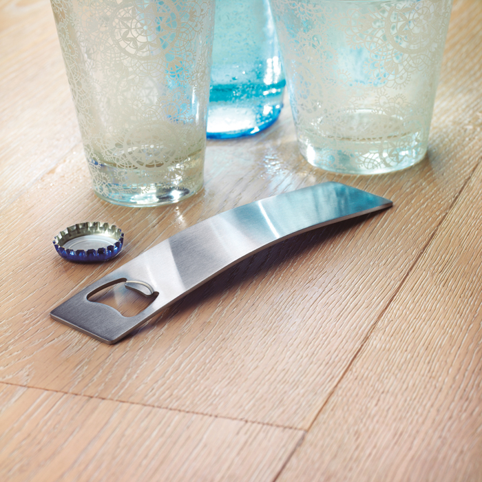 Elegante apribottiglie con logo in acciaio inox Curvus