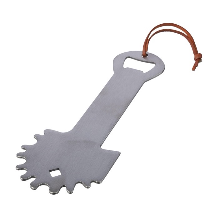 Pulitore per barbecue in acciaio inox con funzione apribottiglie. Un regalo per esterni che associa il tuo marchio a momenti positivi e condivisi.