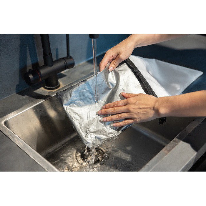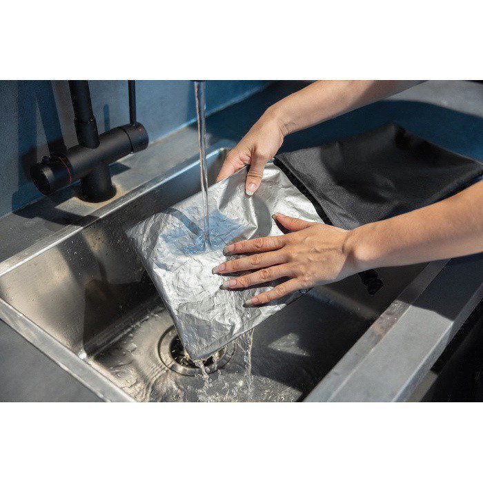 Lunch box pieghevole realizzato a partire da bottiglie di PET riciclato, rappresenta un’alternativa sostenibile alle borse monouso. Le sue dimensioni regolabili e la chiusura ermetica mantengono gli alimenti freschi più a lungo. Facile da pulire, si piega in modo compatto per un trasporto comodo ed è adatto per pane, verdure e frutta. Inoltre, è utilizzabile anche in congelatore.