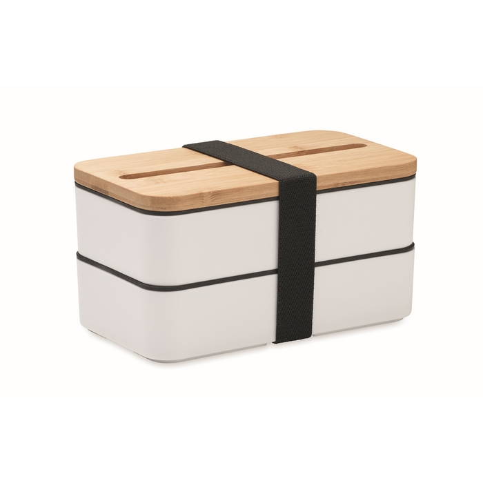 Lunch box doppio scomparto con posate in PP riciclato e bambù 800ml